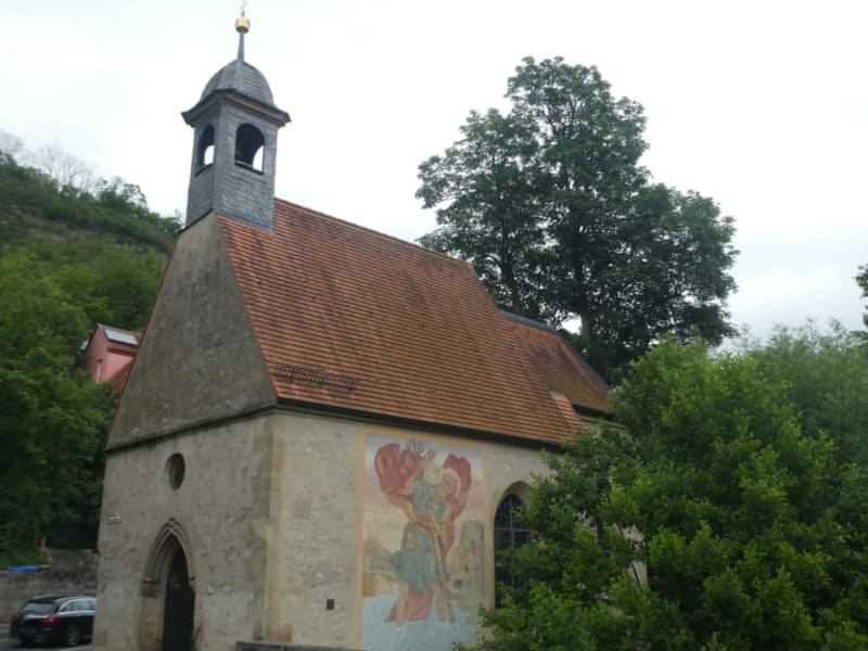 Die kleine Kapelle aus dem 16.Jahrhundert befindet sich direkt an der Tauber - etwas außerhalb der Altstadt. Was ein wenig schade ist - direkt am Gebäude ist die Straße.