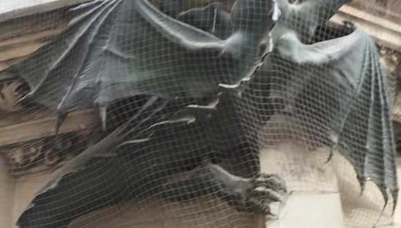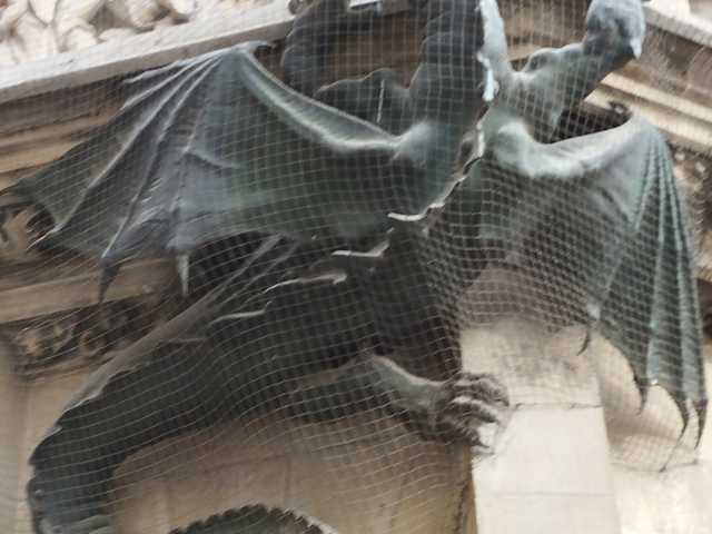 Drachenstatue an der Wand des Rathauses.