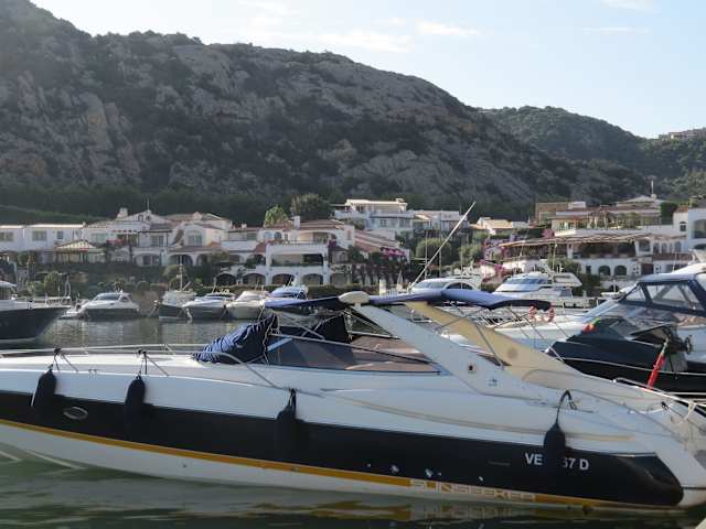 Nach Ankunft im Hotel bin ich in Poltu Quatu an der Hafenpromenade entlang zum Ausgang der Bucht spaziert und konnte einen schönen Blick auf das Meer, die kleine Nachbarinsel Isola dei Cappucini und vor allem auf das La Maddalena - Archipel werden. Bestens zu sehen ist die Insel Isola Caprera, die wirklich auch einen Besuch wert ist. Der Ausblick machte "Hunger" auf einen solchen Besuch (ab Palau per Fähre nach La Maddalena und von dort ist die Isola Caprera z. B. per Autu zu erreichen).