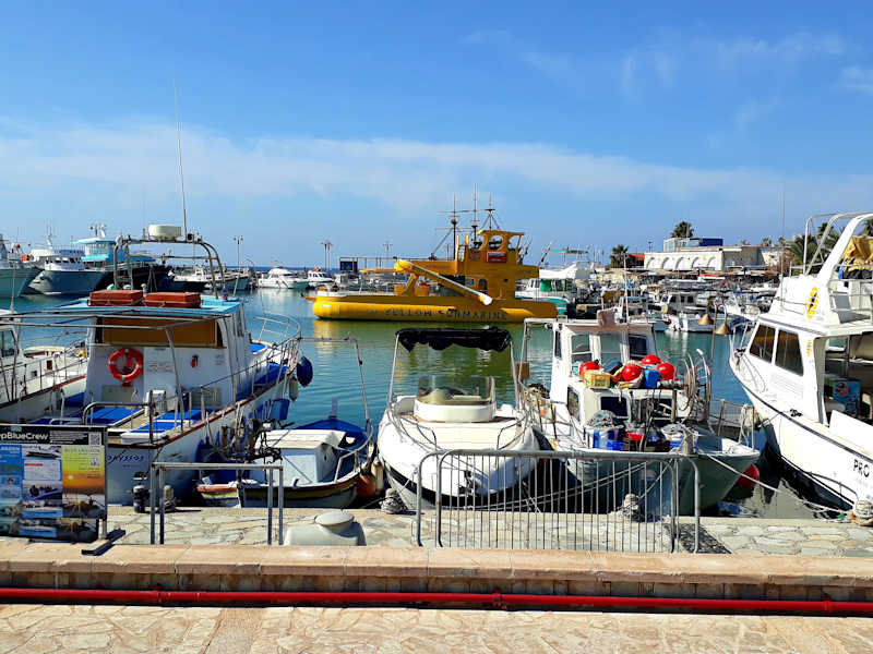 Die Yellow Submarine liegt im Hafen von Agia Napa und startet mehrmals täglich zu Ausflügen auf dem Wasser. Es hat Platz für ca. 30 Fahrgäste. Durch die Bullaugen des U-Boots kann man die Unterwasserwelt bestaunen. Der Skipper füttert die Fische und wer mag kann unter Anleitung in den Höhlen schwimmen. www.yellowsubmarinecy.com