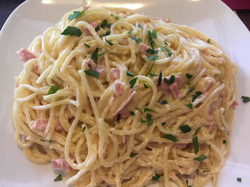 Perfekte Location, um vor oder nach einem Handballspiel zusammen zu setzten. Normalerweise gibt's oft Pizza oder Salat. Bei diesem Besuch haben wir mal die Pasta Variationen im Riesenberg getestet. Einmal die Pasta mit Trüffel und die klassische Spaghetti Carbonara. Beide Pasta Sorten waren sehr lecker und die Portionen waren schon fast zu groß. Also auch die Pasta im Riesenberg zu empfehlen!