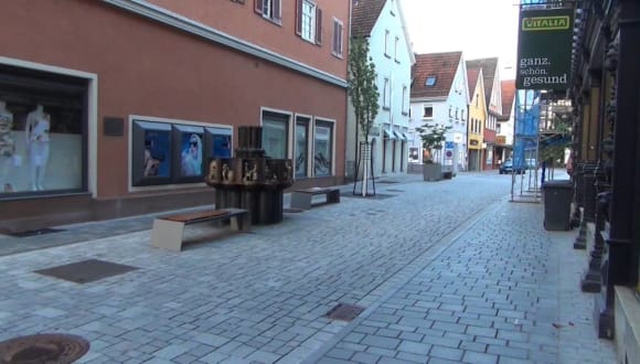 Kleine Skulpturen stellen die zwölf Reutlinger Zünfte in ihrem Handwerksberuf dar. Dieser Brunnen, direkt neben der Marienkirche gelegen, ist ein beliebtes Fotomotiv.