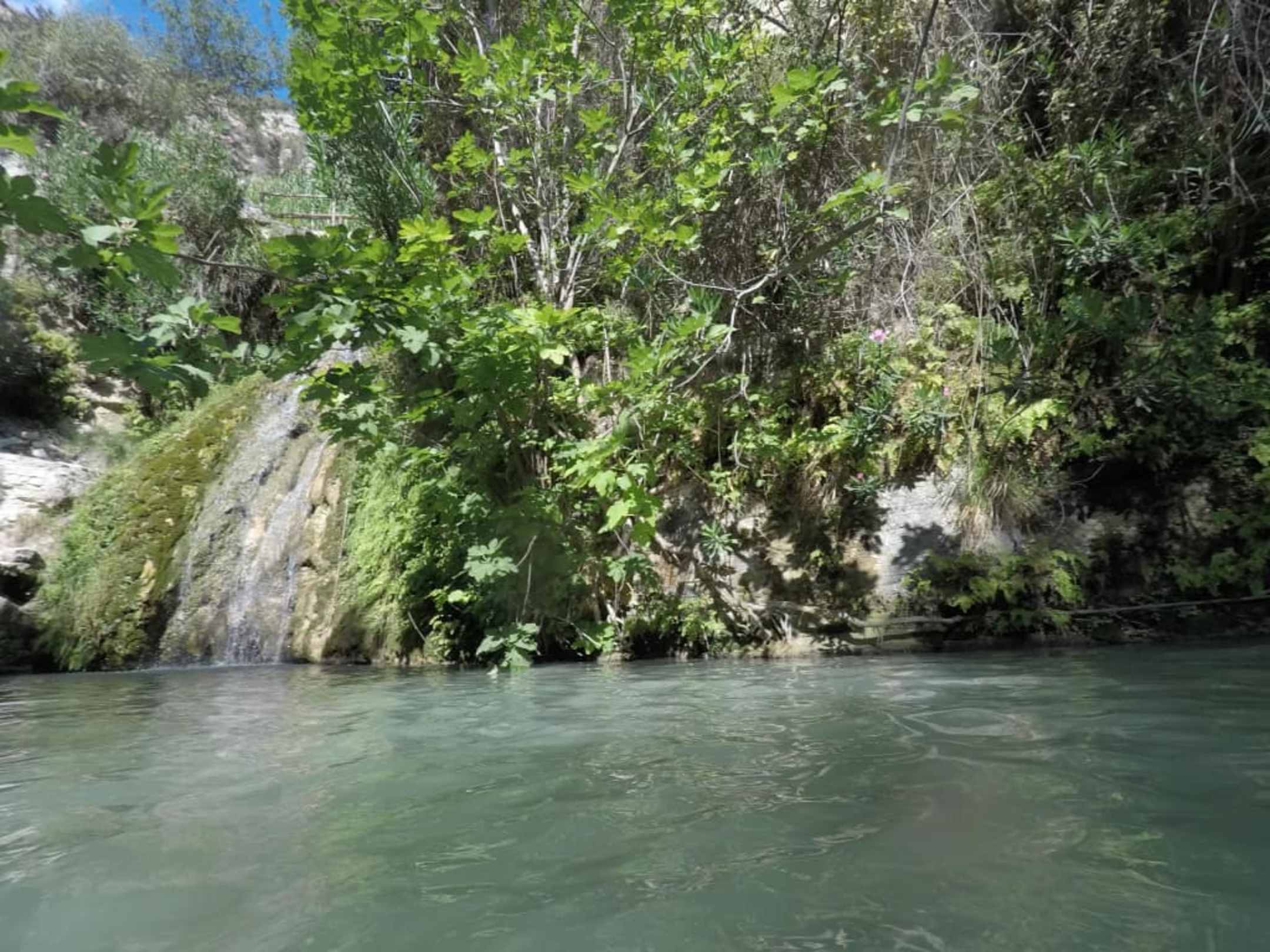 Das hellblaue Wasser und der Wasserfall