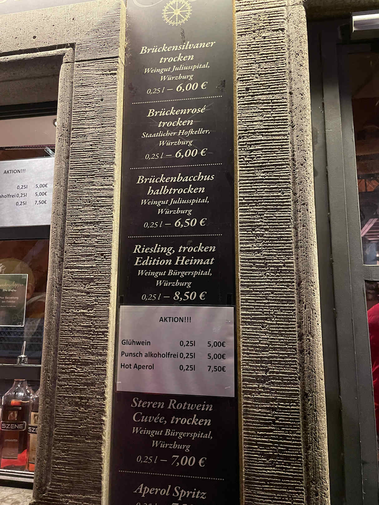 Preisliste im Winter
