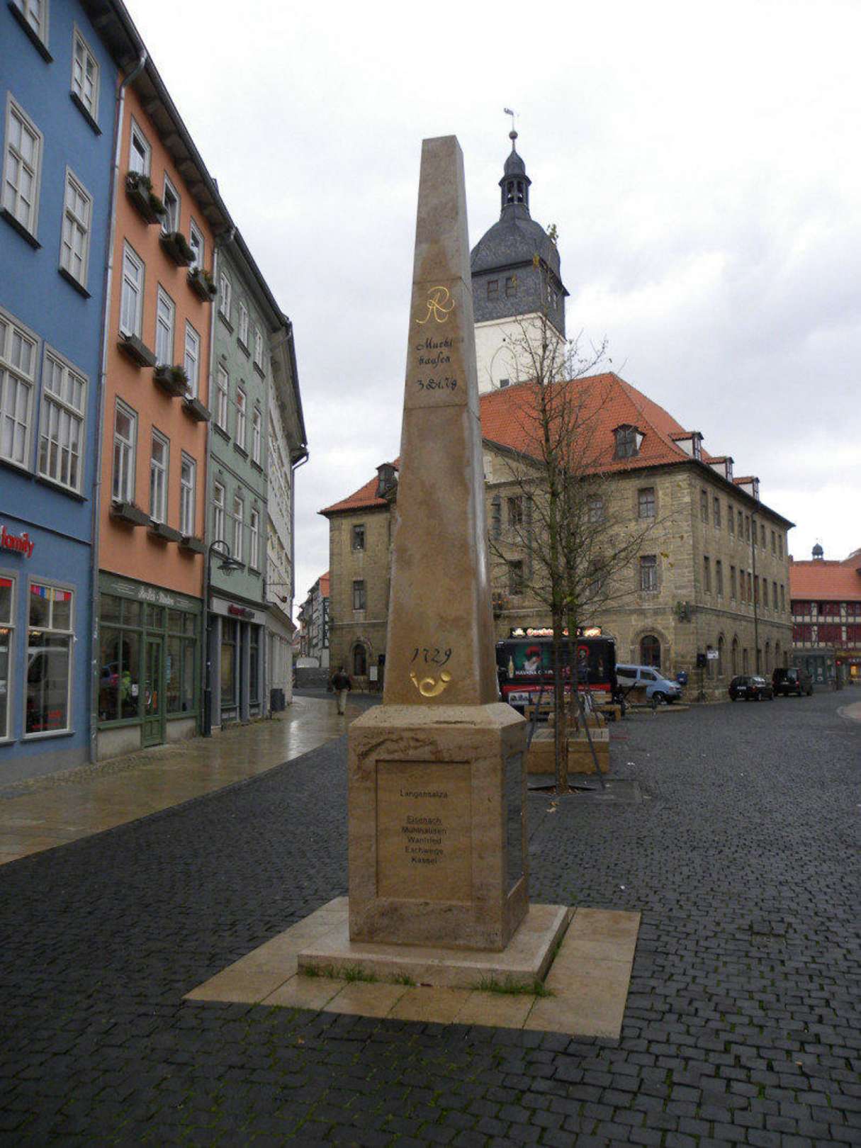 Rathaus mit Postsäule