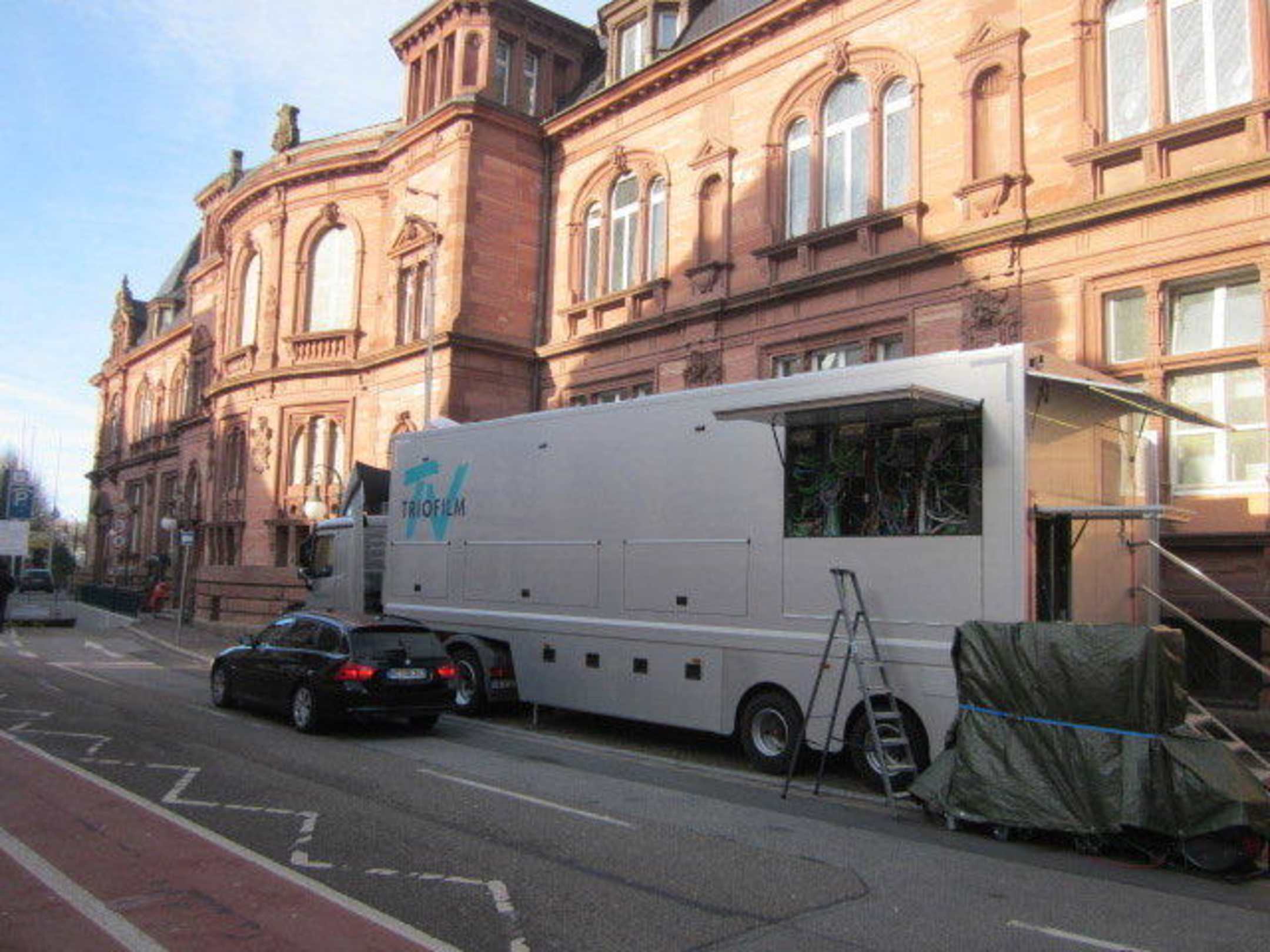 Filmteam vor der Stadthalle