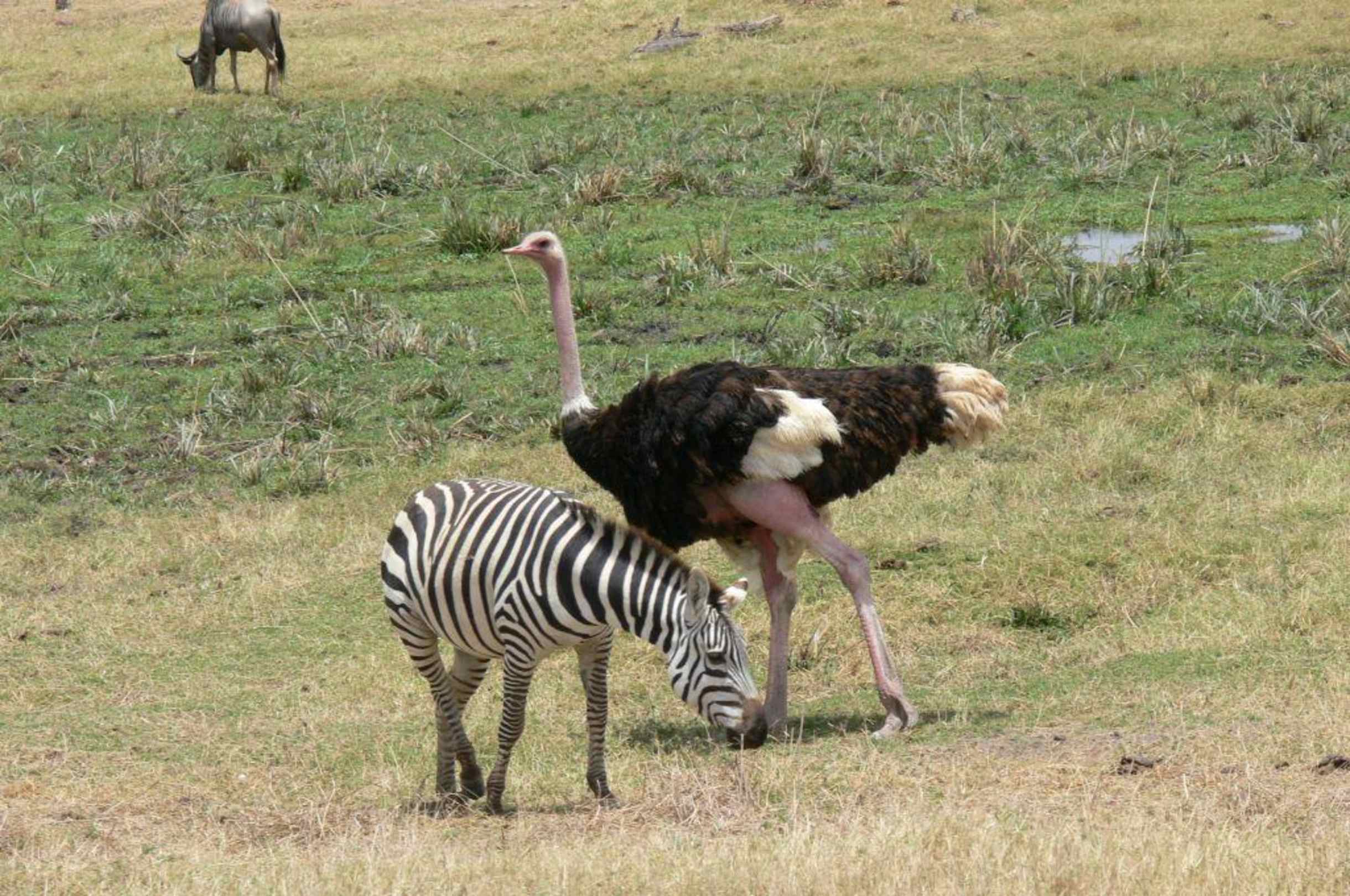 Strauß und Zebra