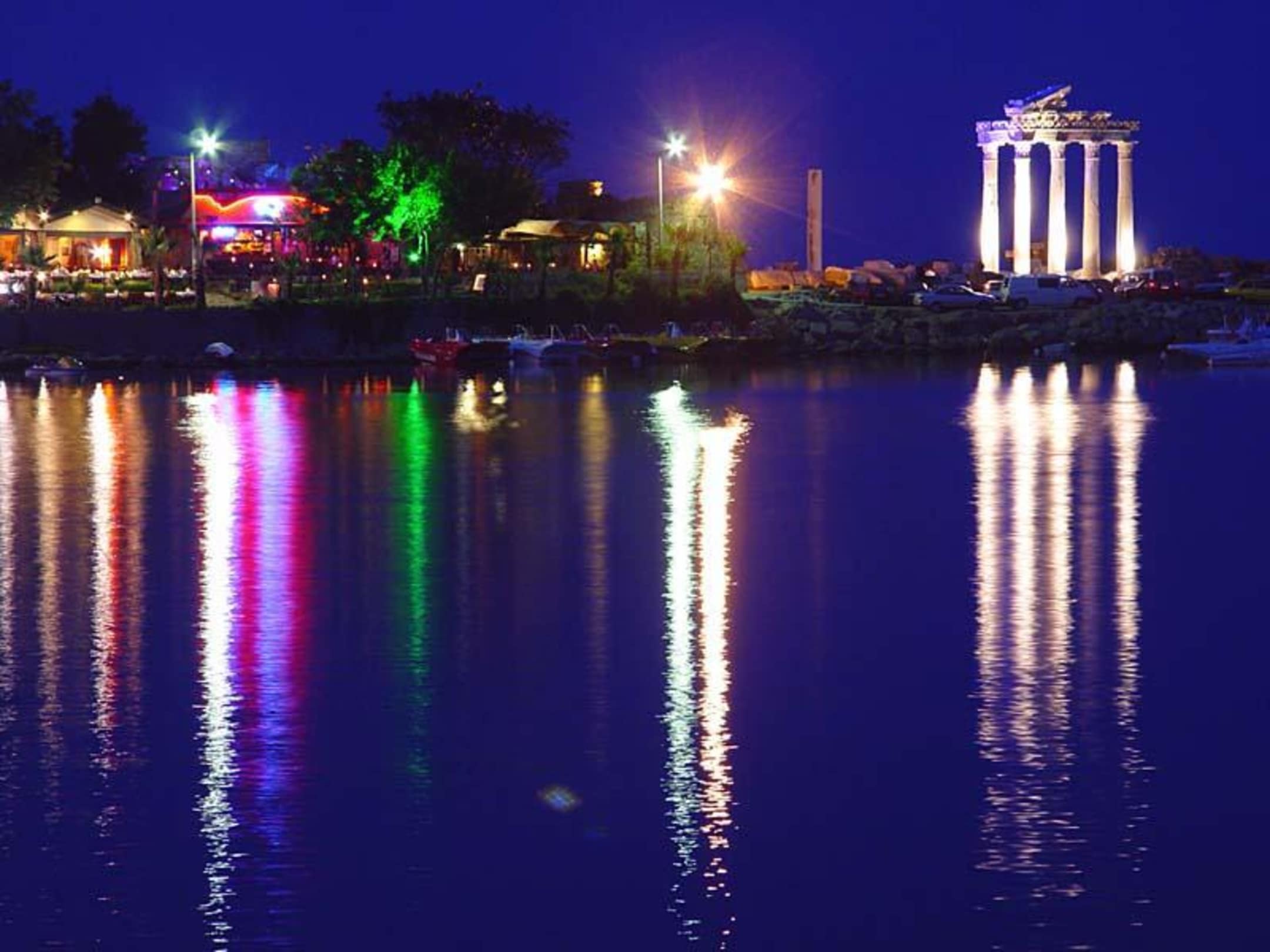 Antik Side Jachthafen vom Boot aus bei Nacht