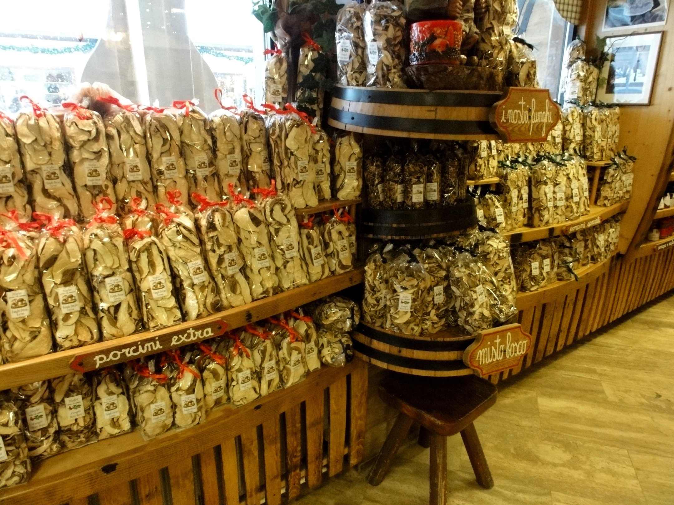 Ein Regal mit getrockneten Steinpilzen
