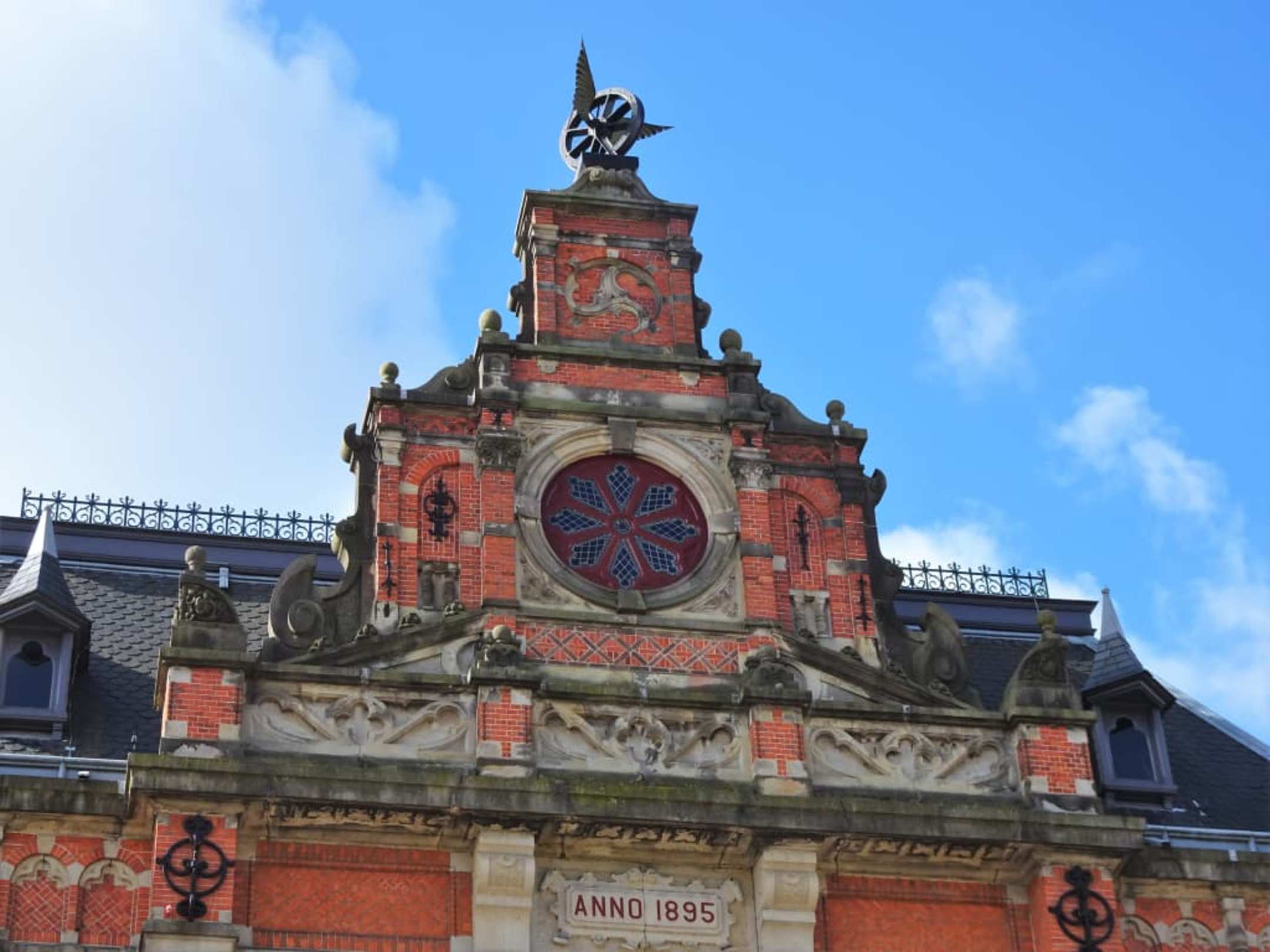 Der Giebel des Zentralgebäudes