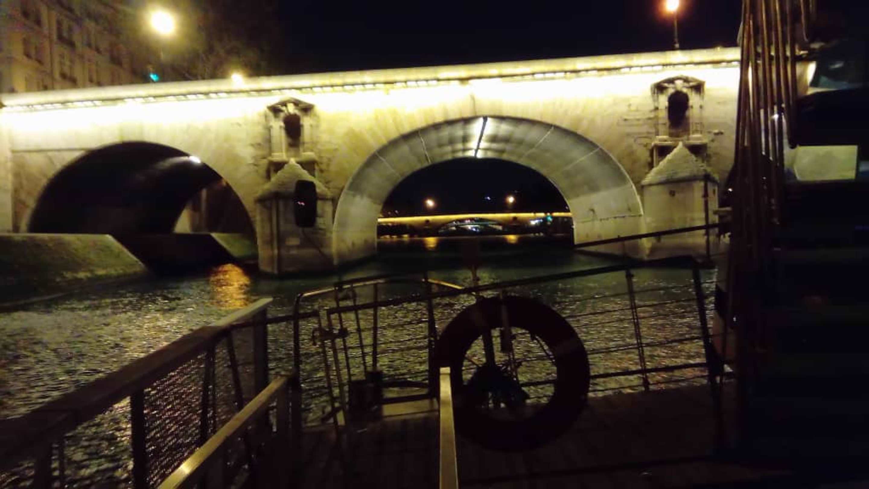 Seine Nachtfahrt durch Brücken.