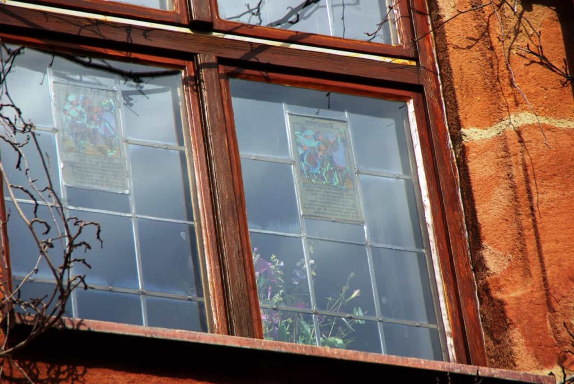 Bleiglas mit Hinterglasmalerei