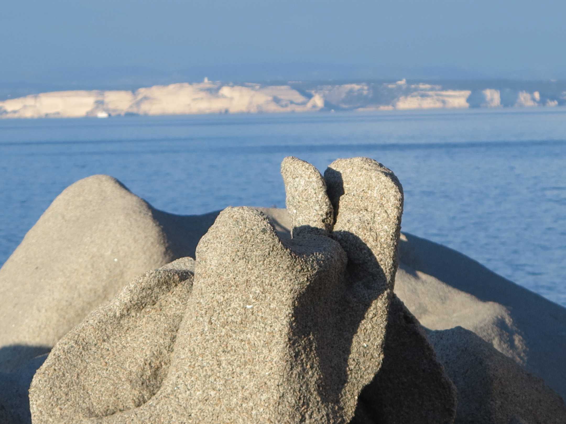 Am Capo Testa, dahinter der Südzipfel von Korsika