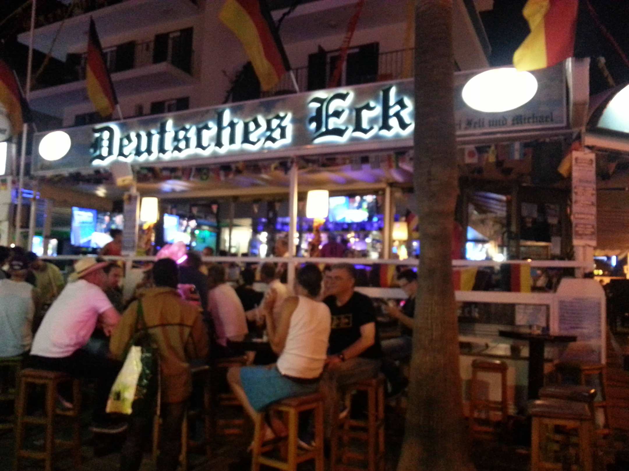 Deutsches Eck am Abend am Abend in der Hochsaison