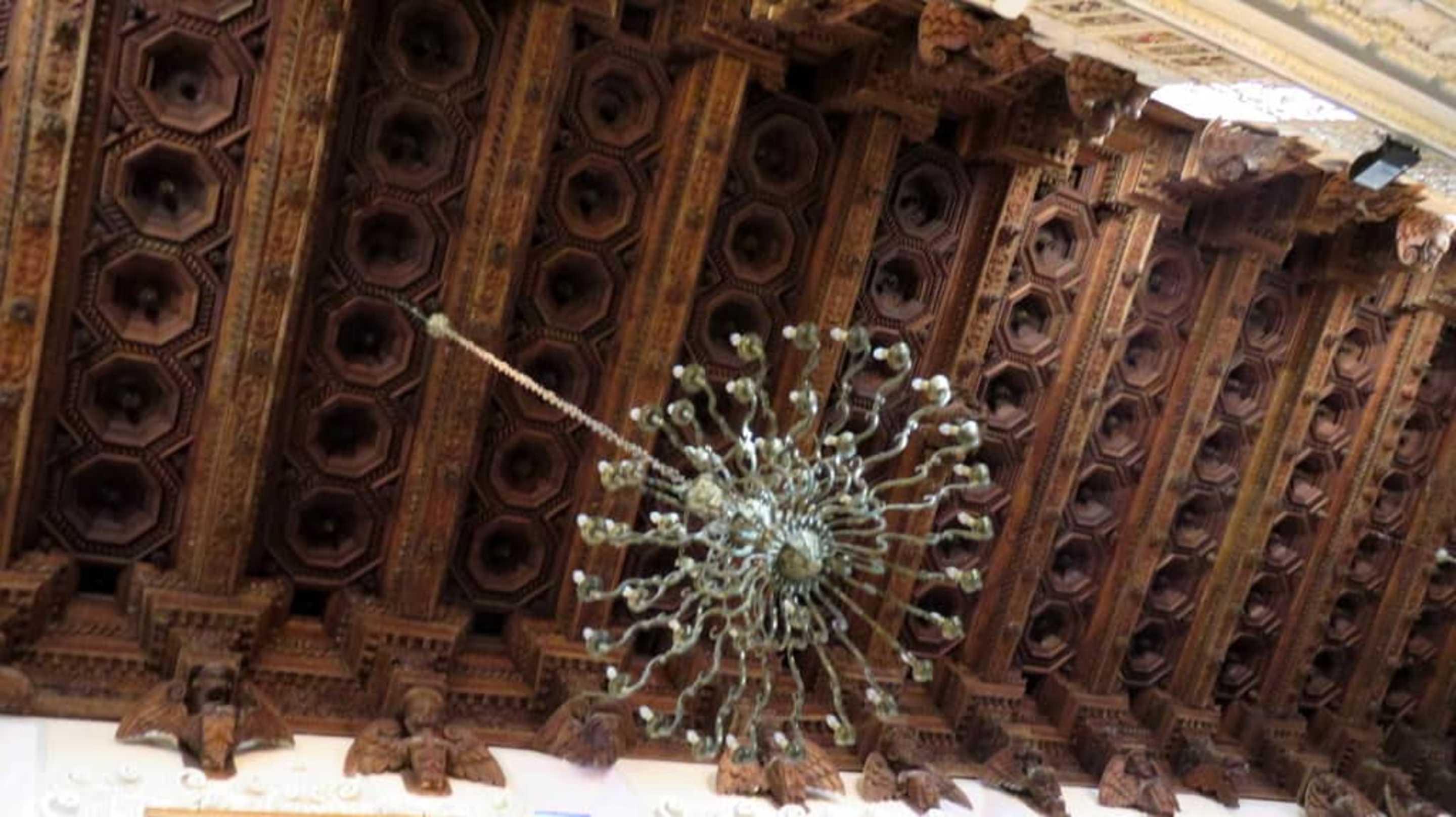 Kasettendecke aus Kastanienholz