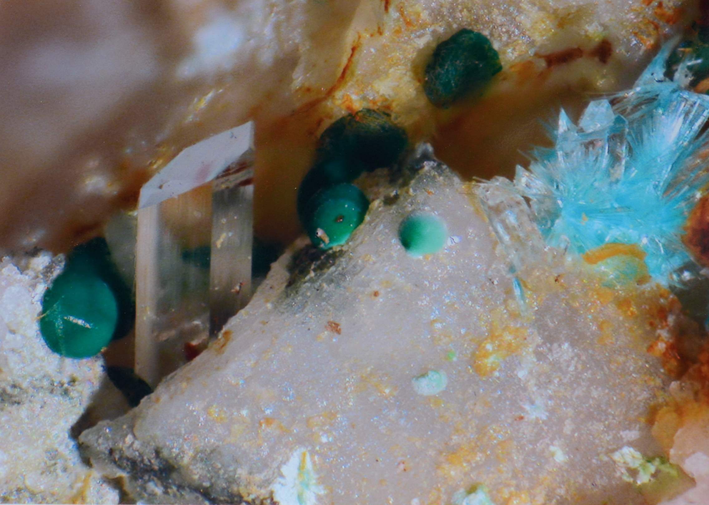 Gipskristalle mit Malachit