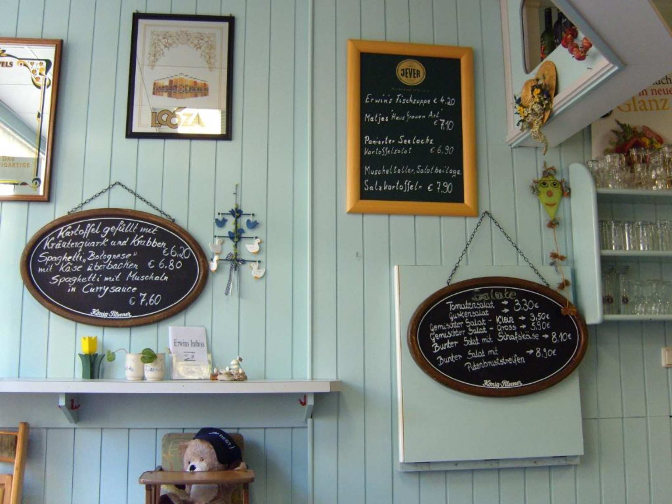 Im Lokal, die Angebotsschilder!