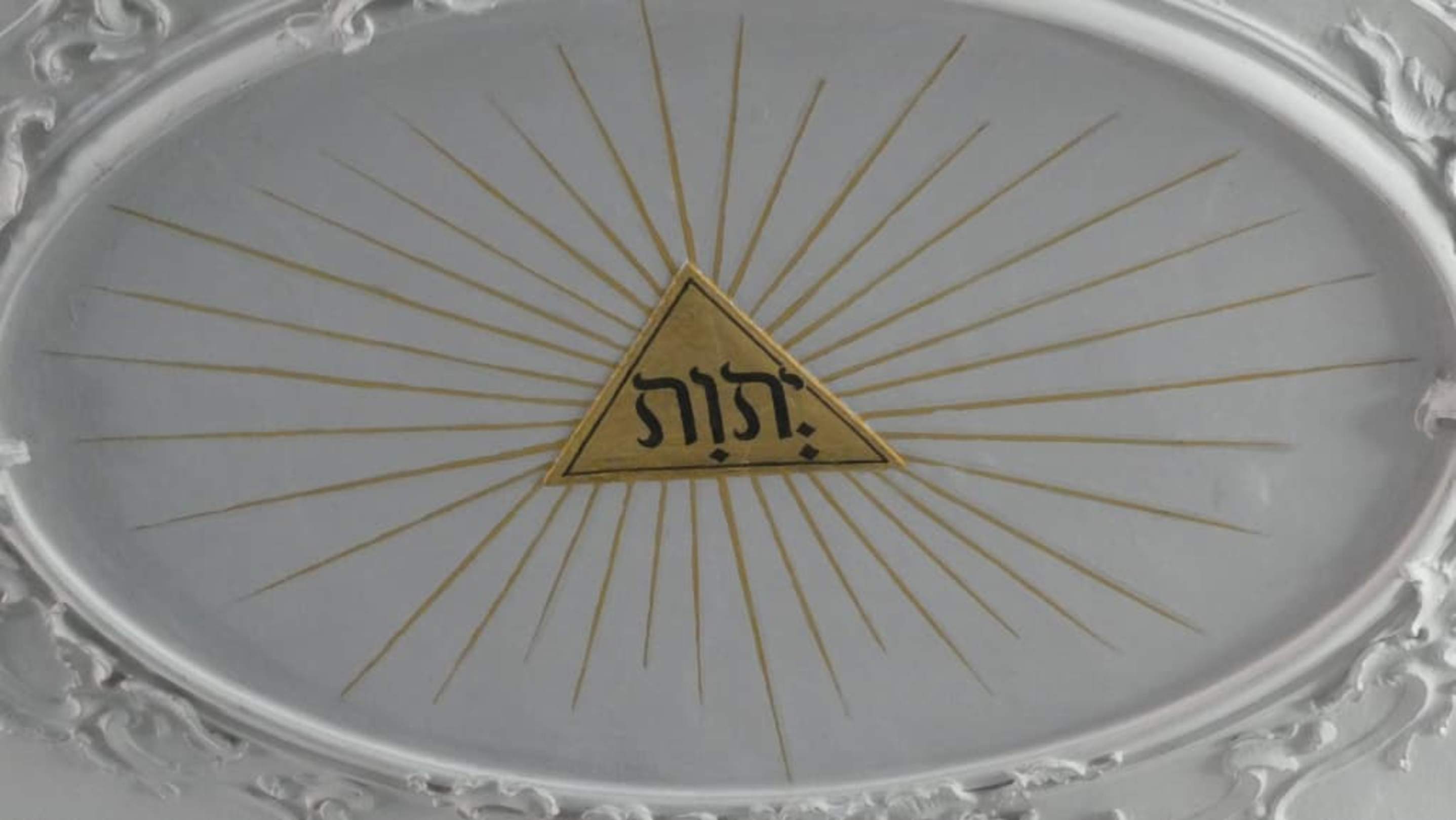 Über der Kanzel steht auf hebräisch יהוה (Jehova)