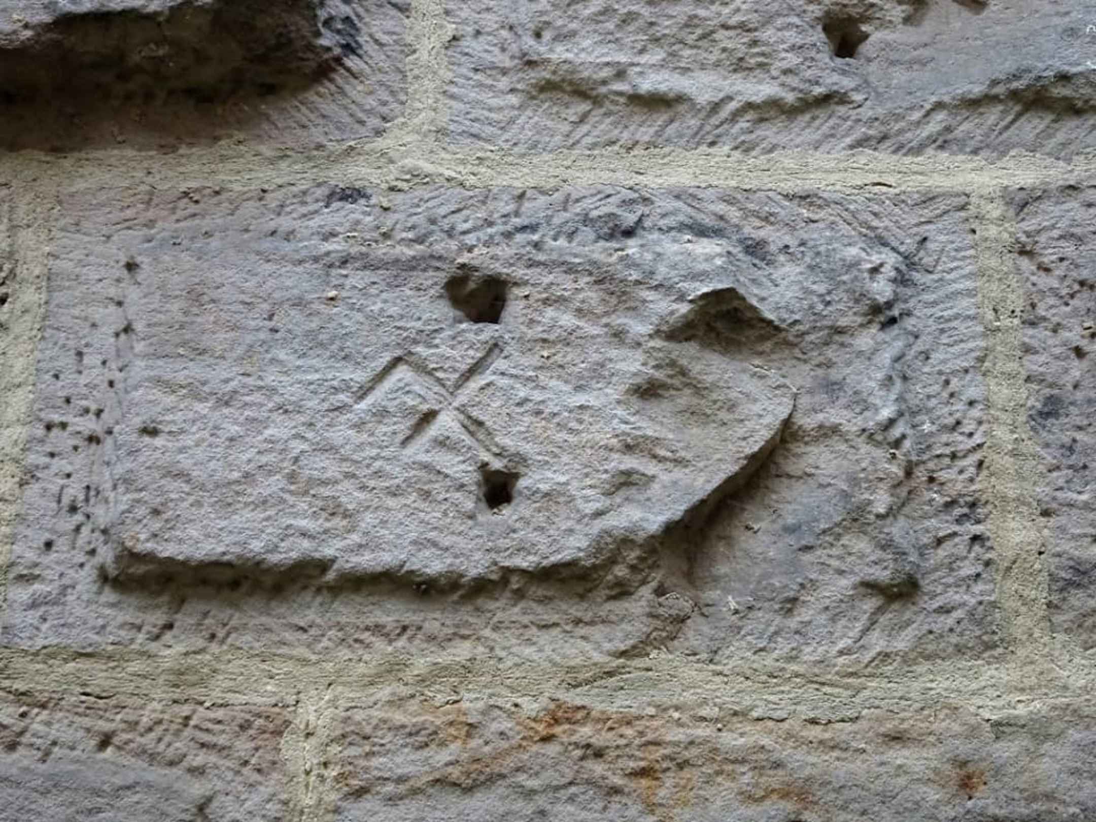 Steinmetzzeichen an den Quadern der Mauern