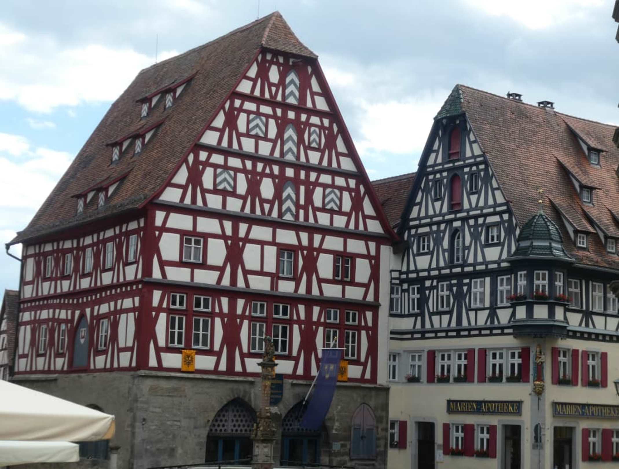 Links Fleisch- und Tanzhaus, rechts Marienapotheke