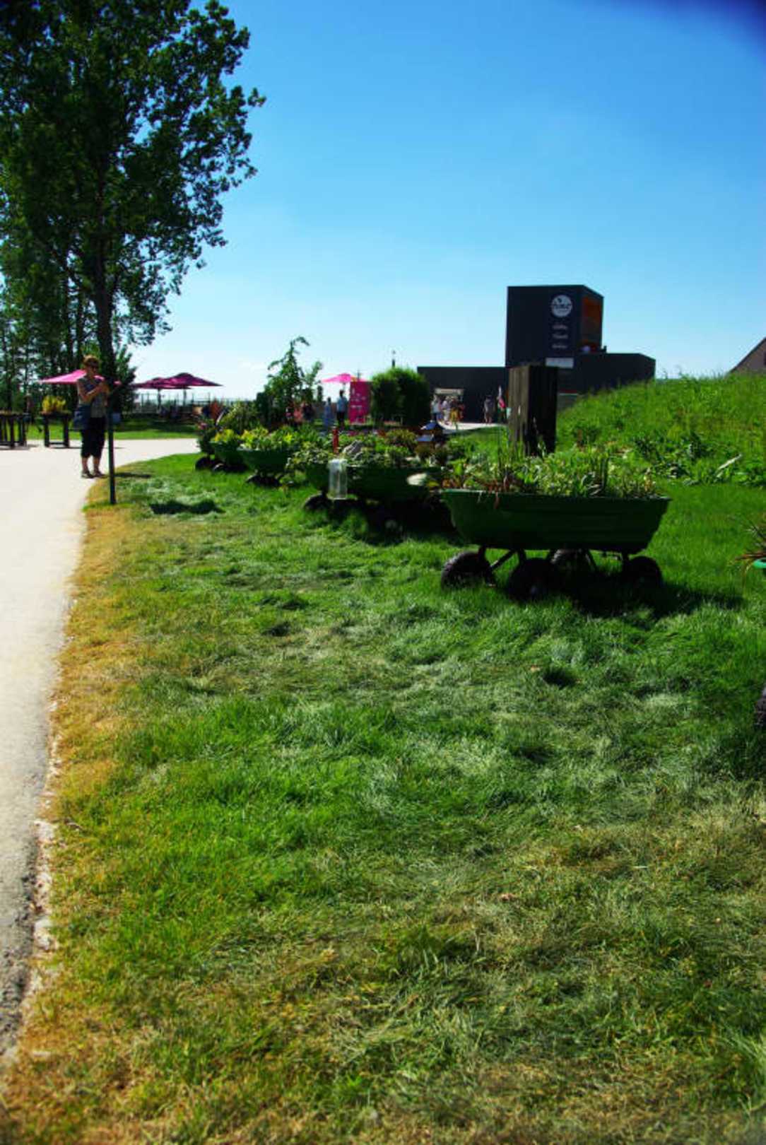 Blumen mit Schubkaren