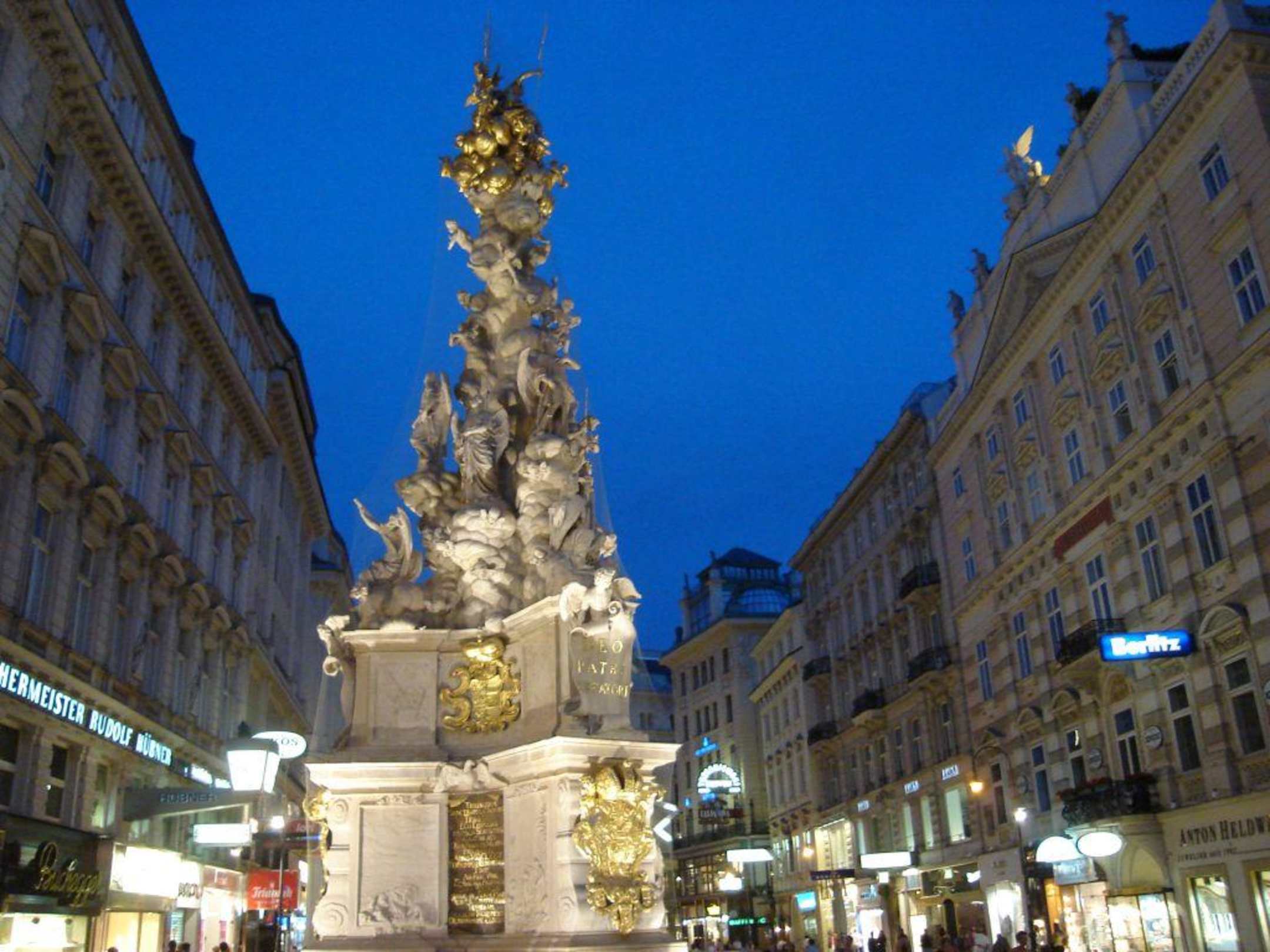 Der "Graben" mit Pestsäule in einer Sommernacht