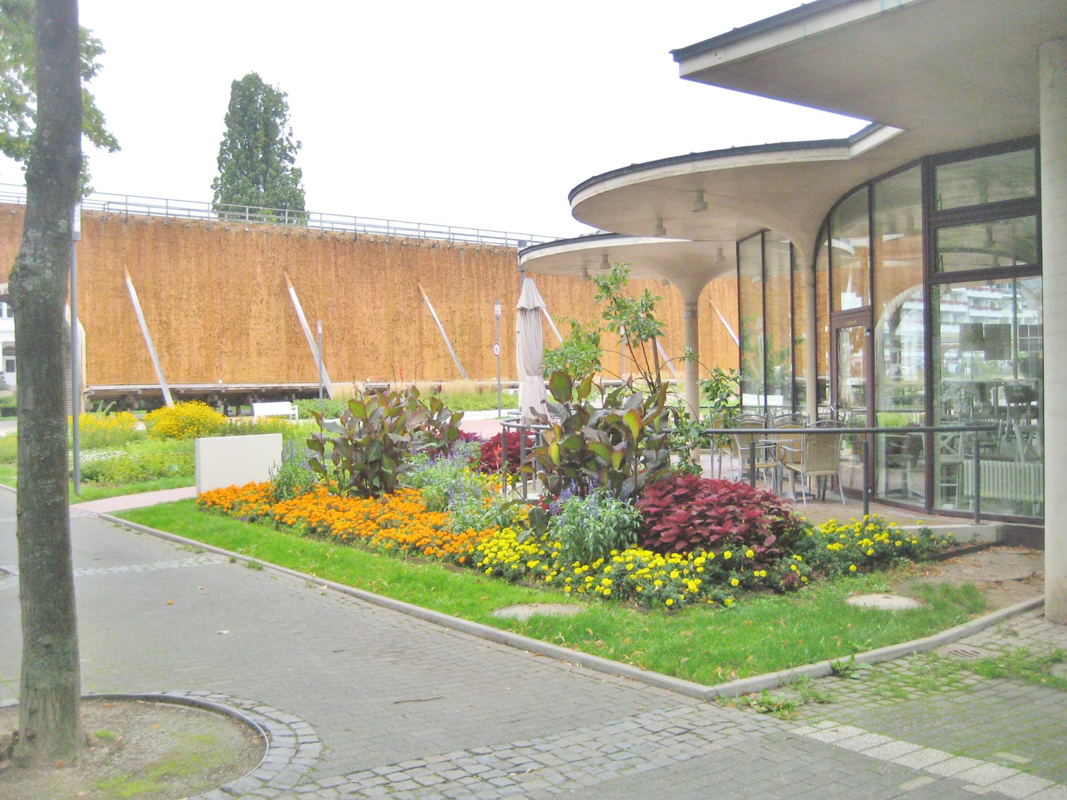 Blick aufs Gradierwerk ab dem Salinen Café