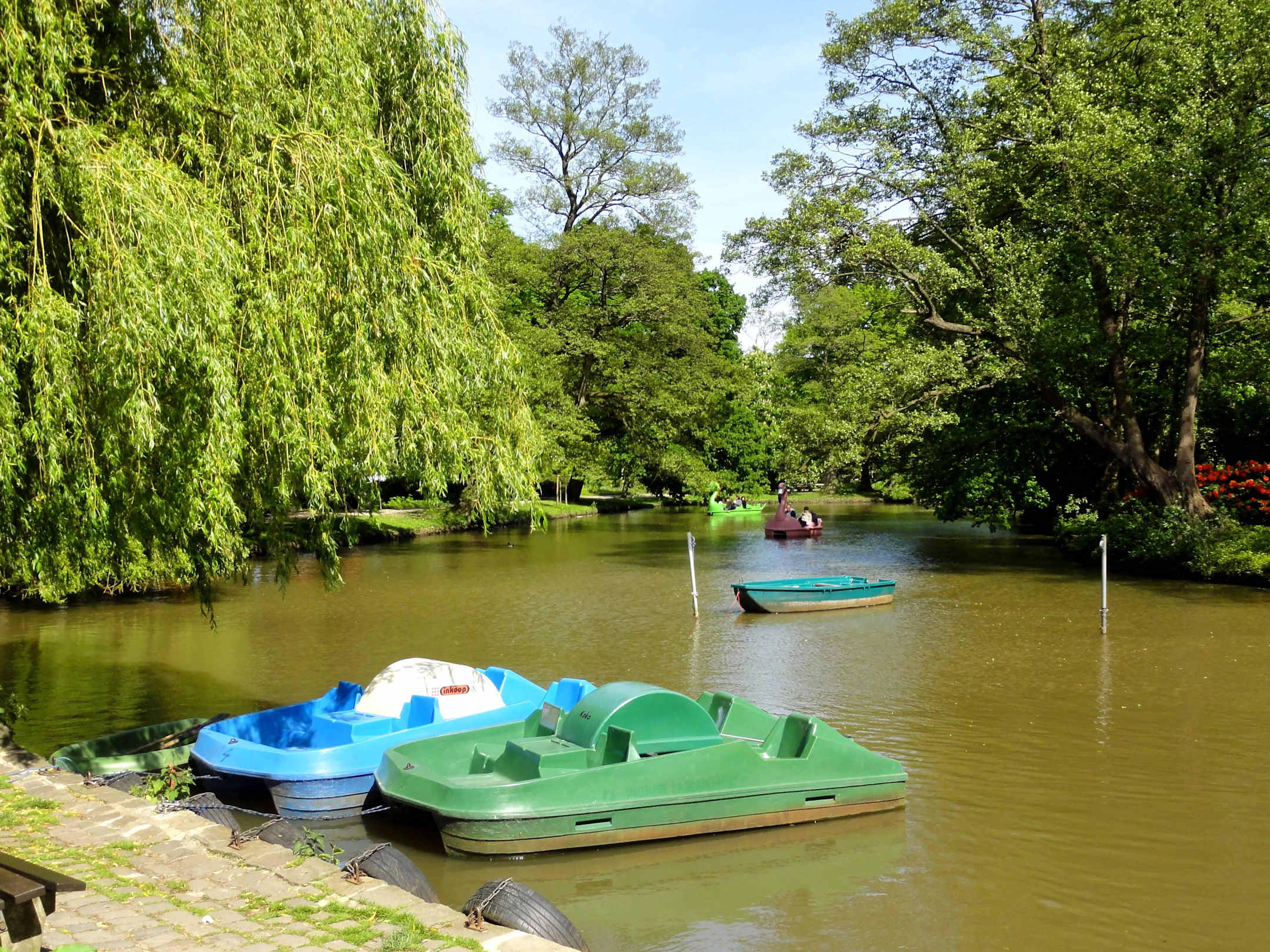 Tretboote auf den Wasserläufen der Graftanlagen