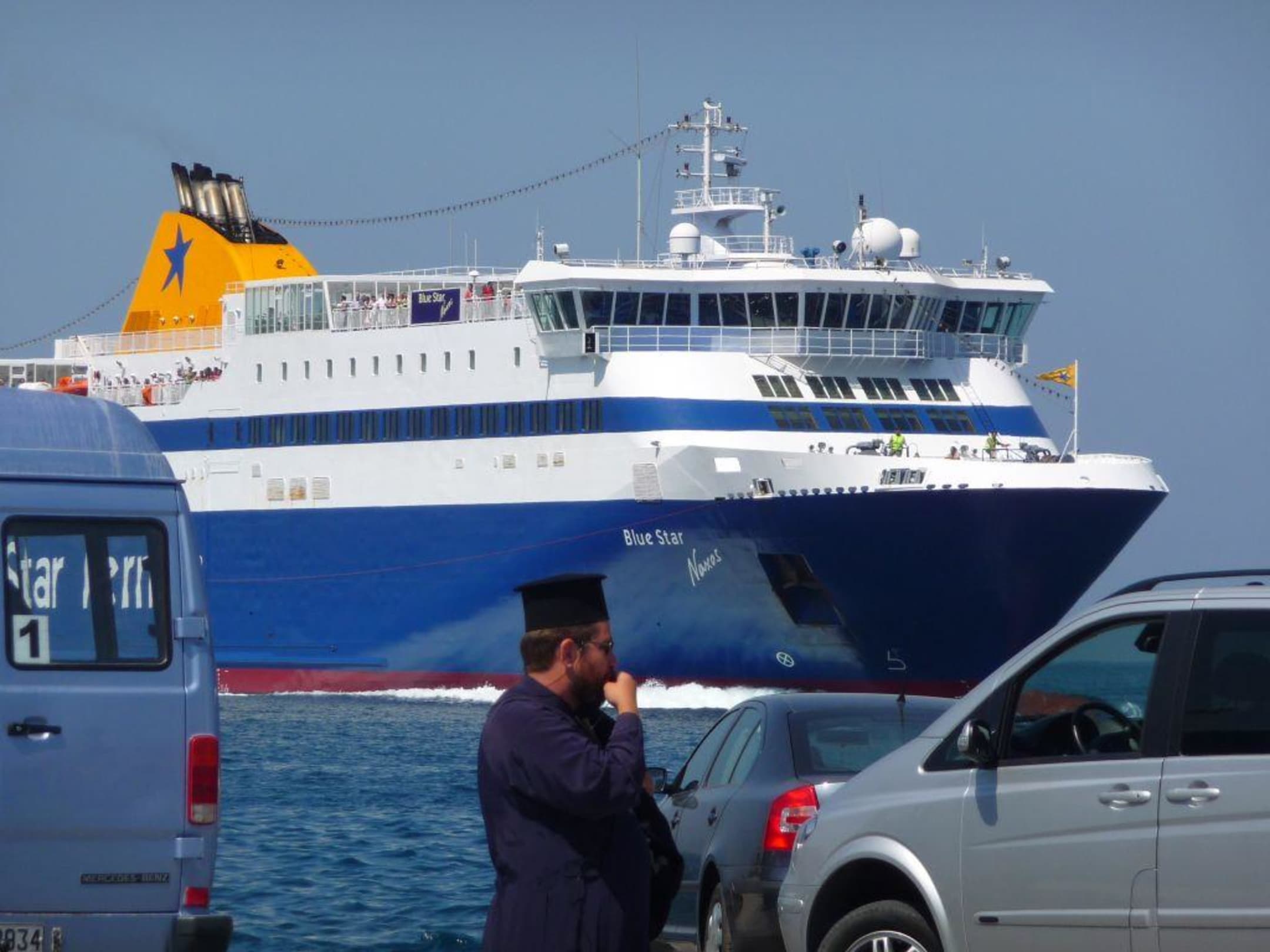 Warten auf die Fähre im Hafen von Paros