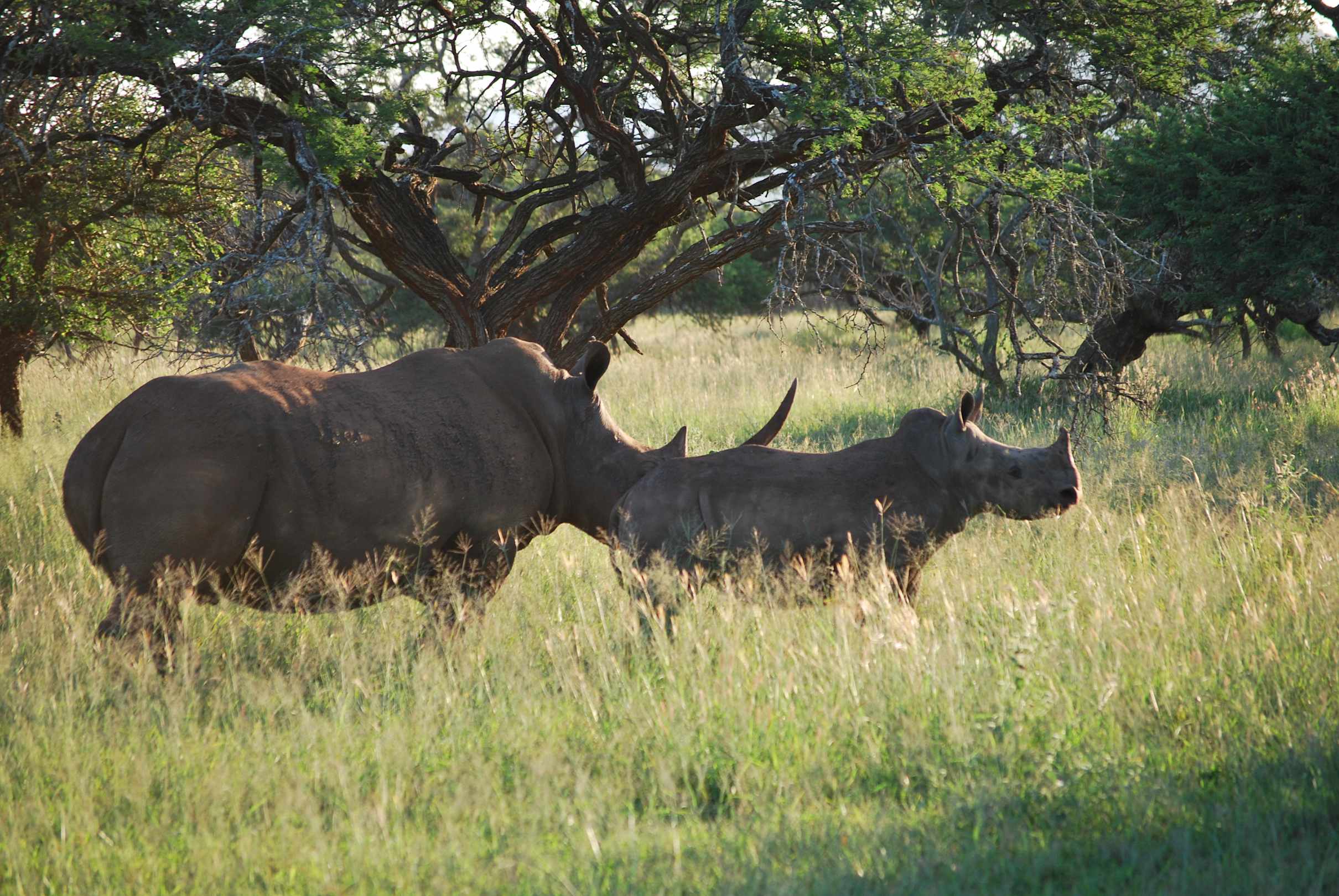 Breitmaul Rhino mit Baby im River Lodge NP