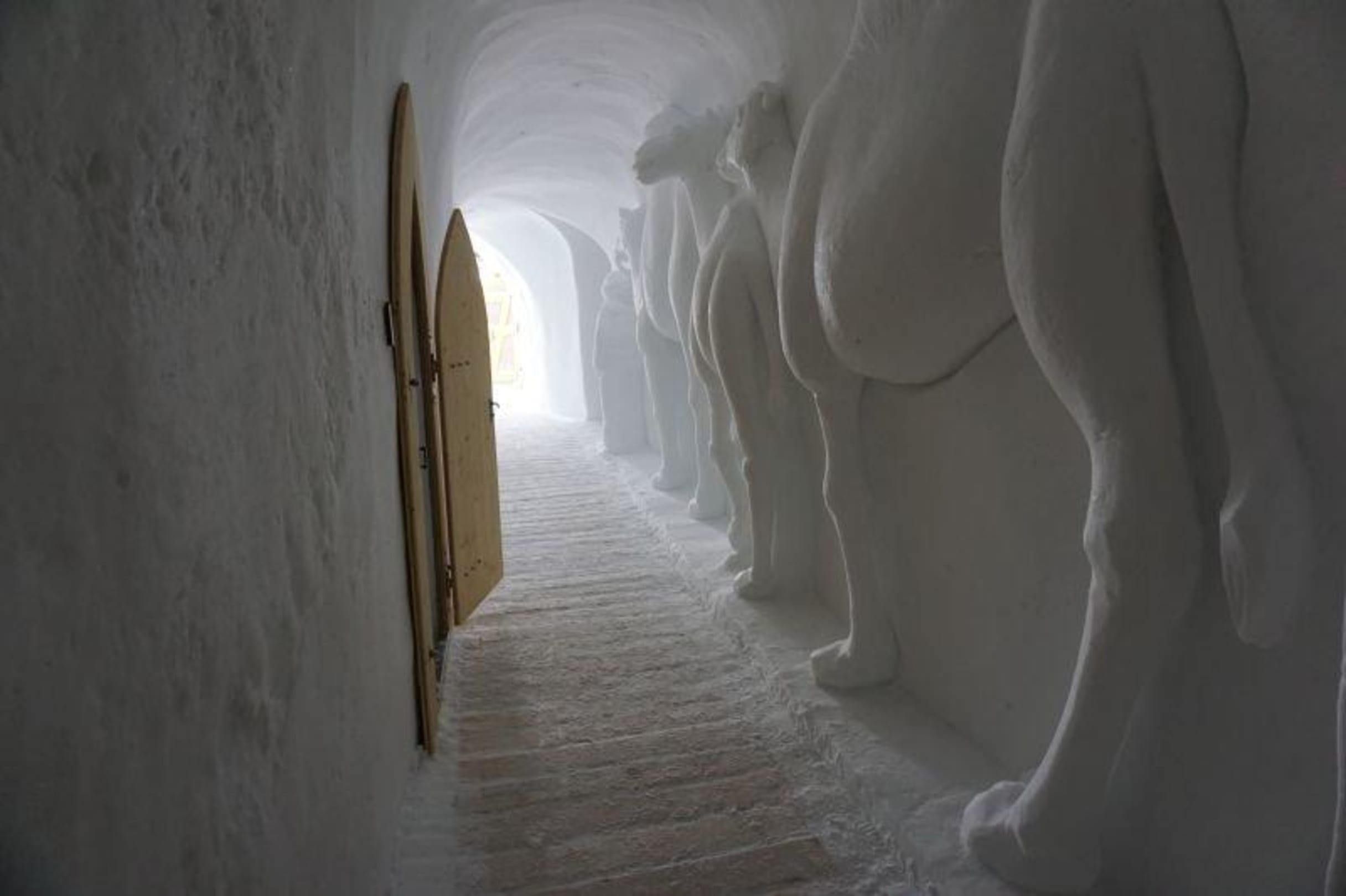 Flur zu den Zimmern mit Skulpturen aus Eis/Schnee