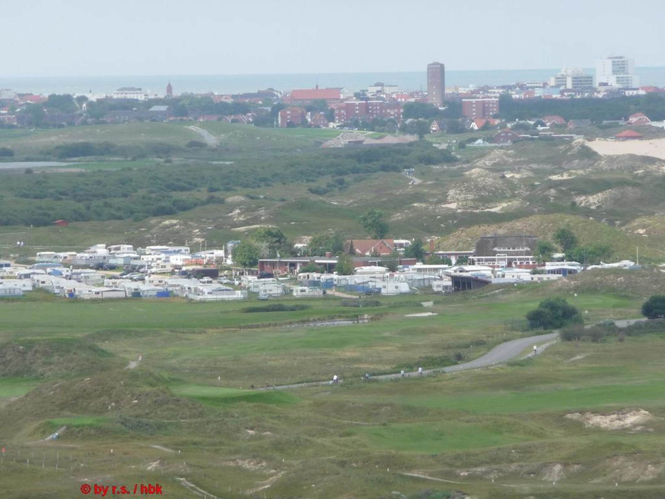 Blick vom Leuchturm über Campingplatz zur Stadt
