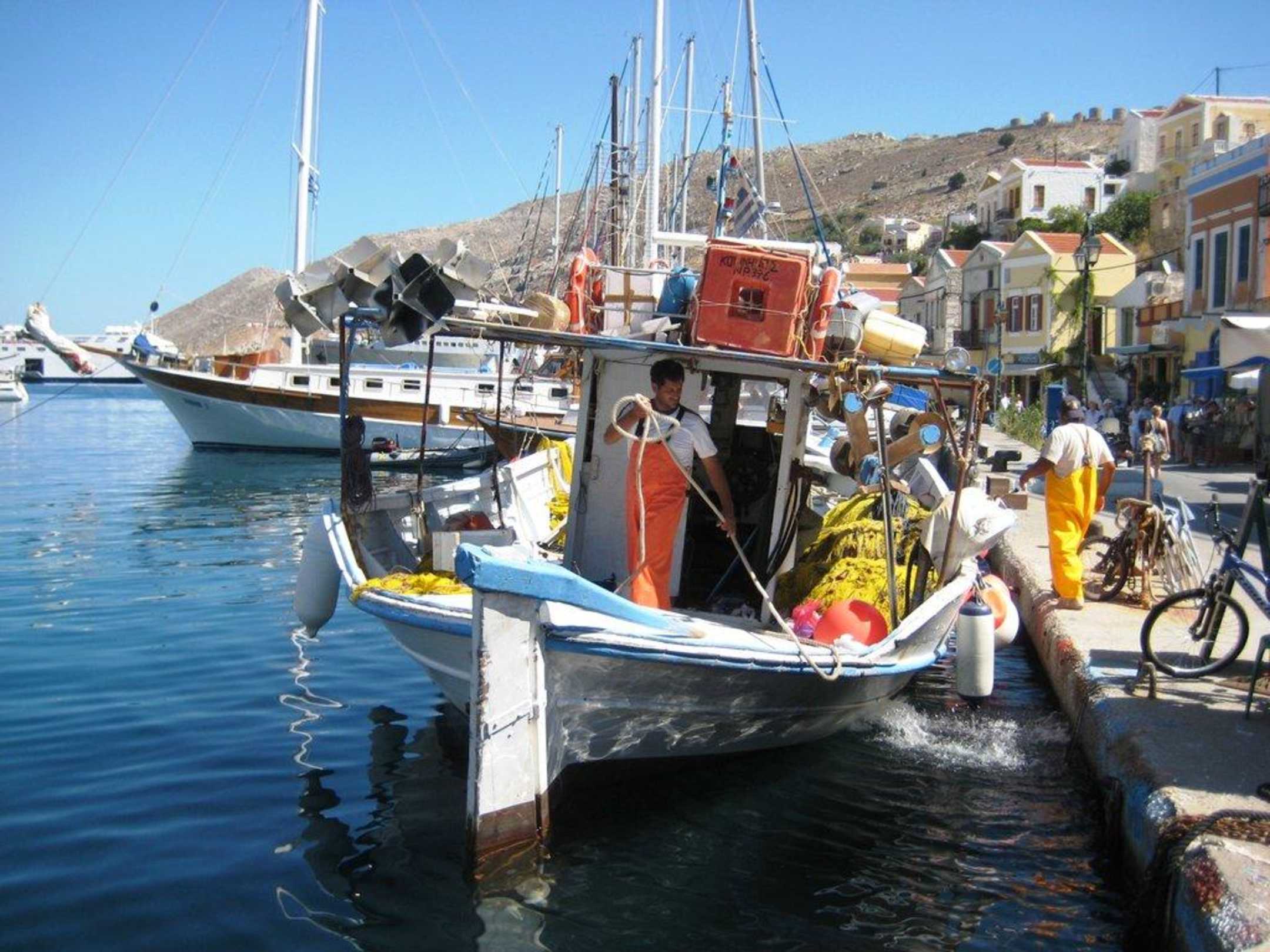 Fischerboot im Hafen von Symi