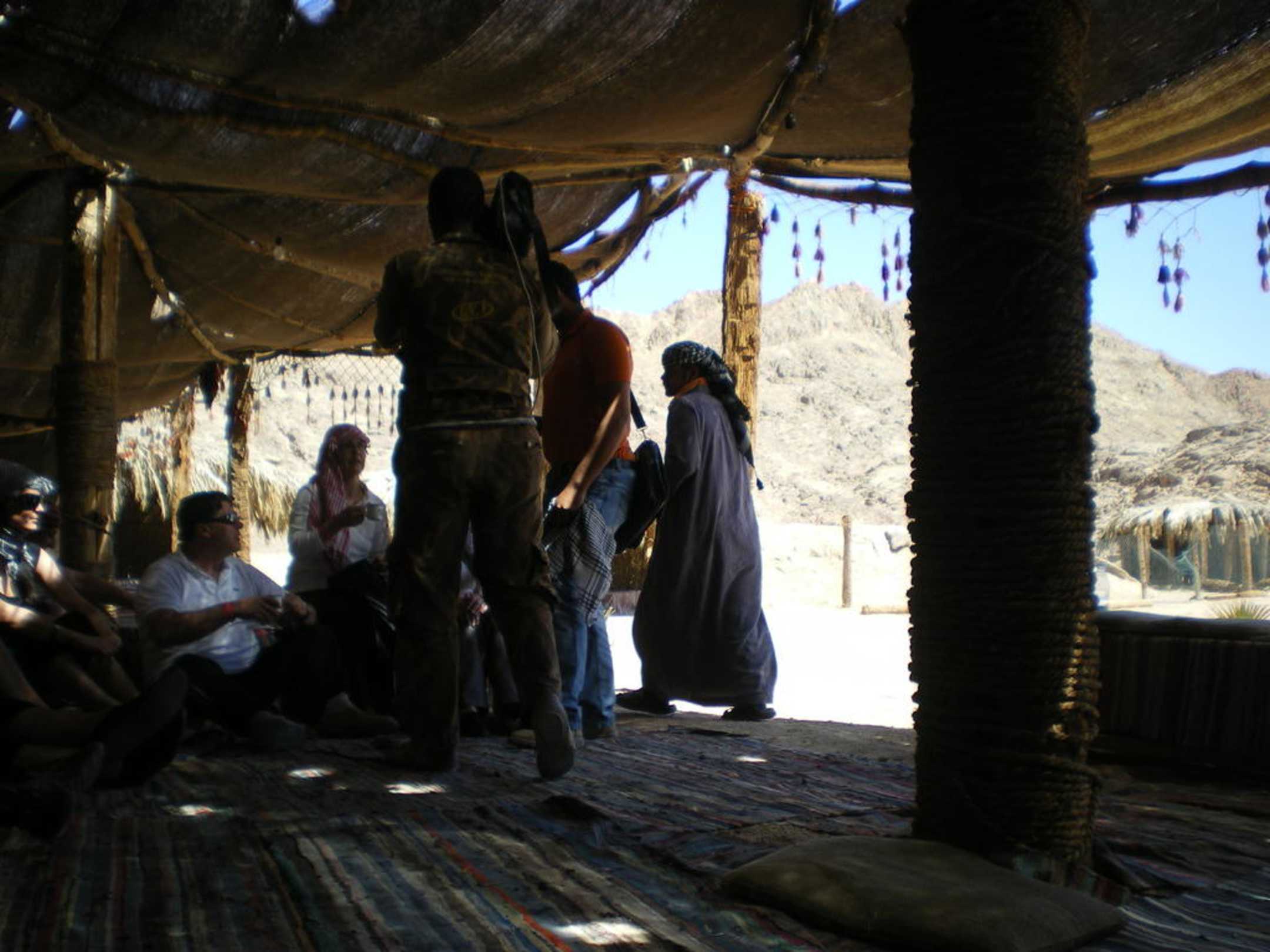 Empfang mit Tee und Shisha im Beduinendorf