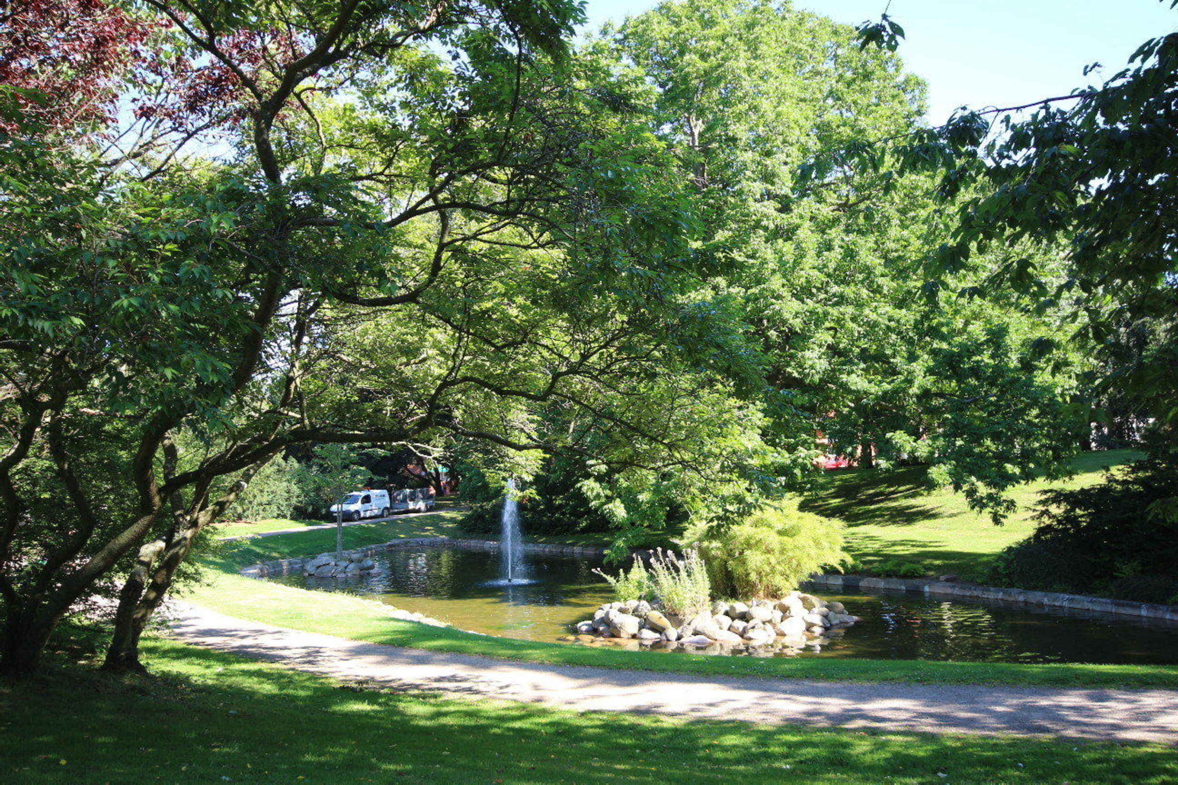 Idyllischer Vogelteich mit Springbrunnen