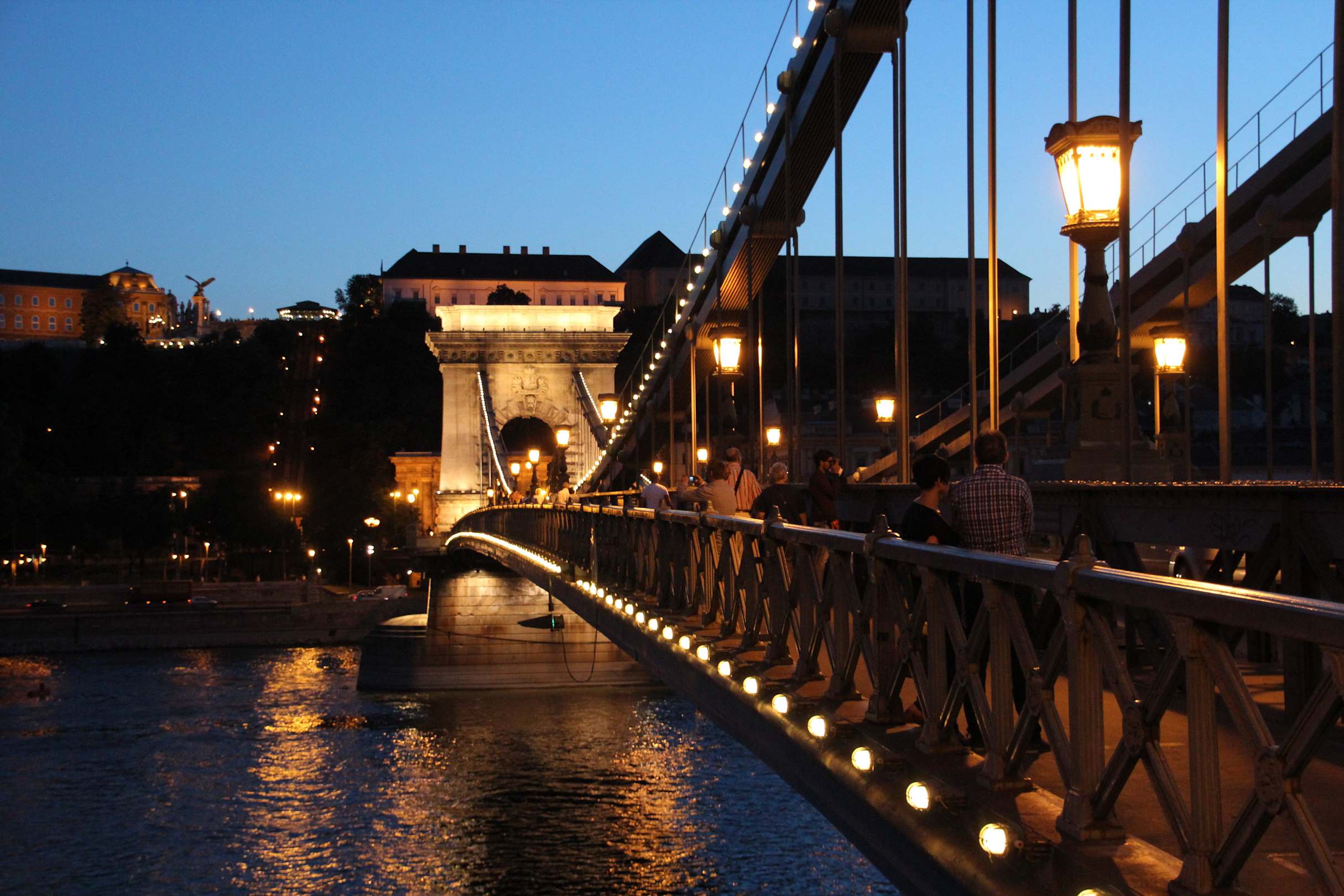 Kettenbrücke bei Nacht, in Richtung Burg