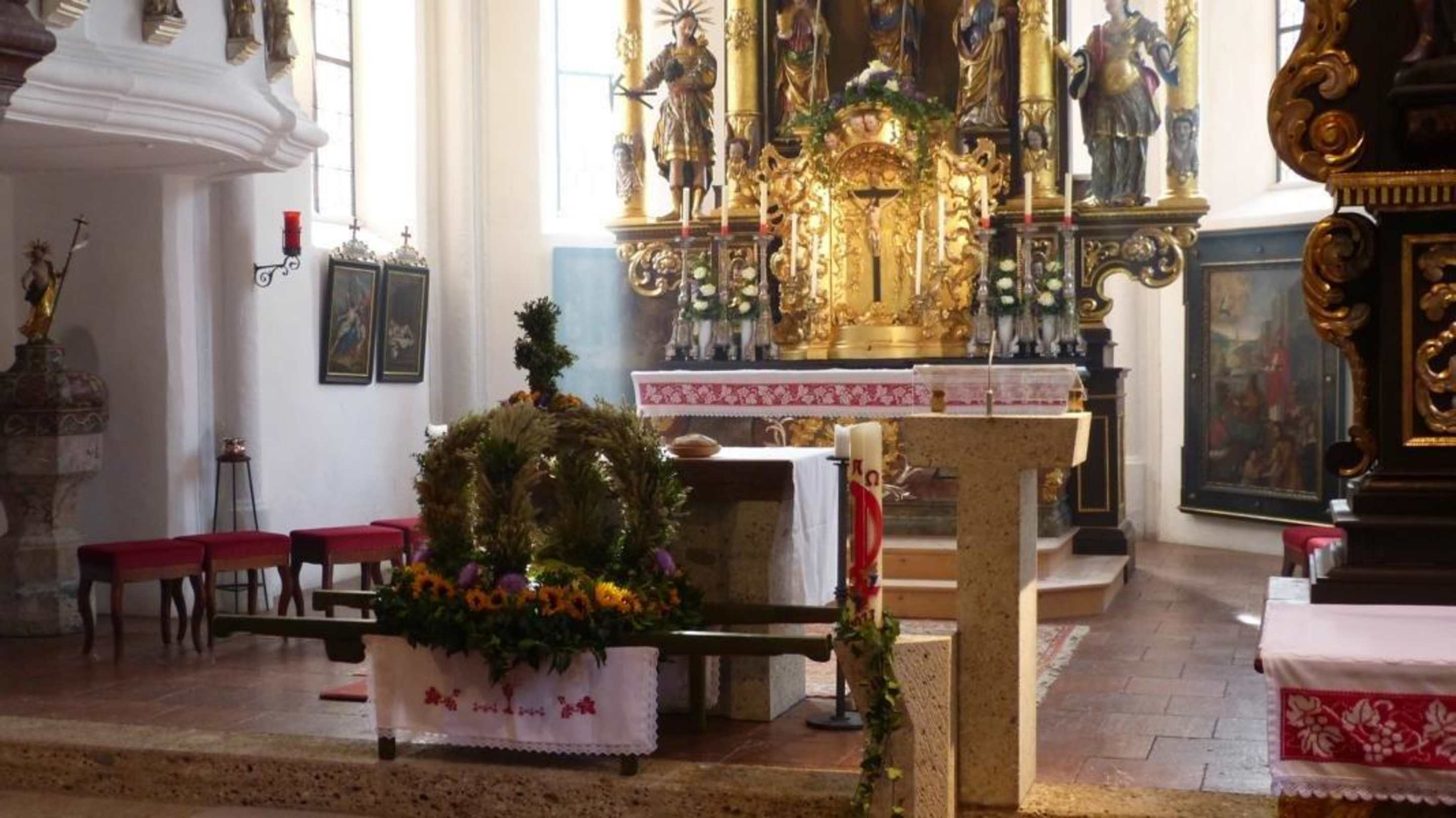 Kirche von Dienten / Altar mit Erntekrone