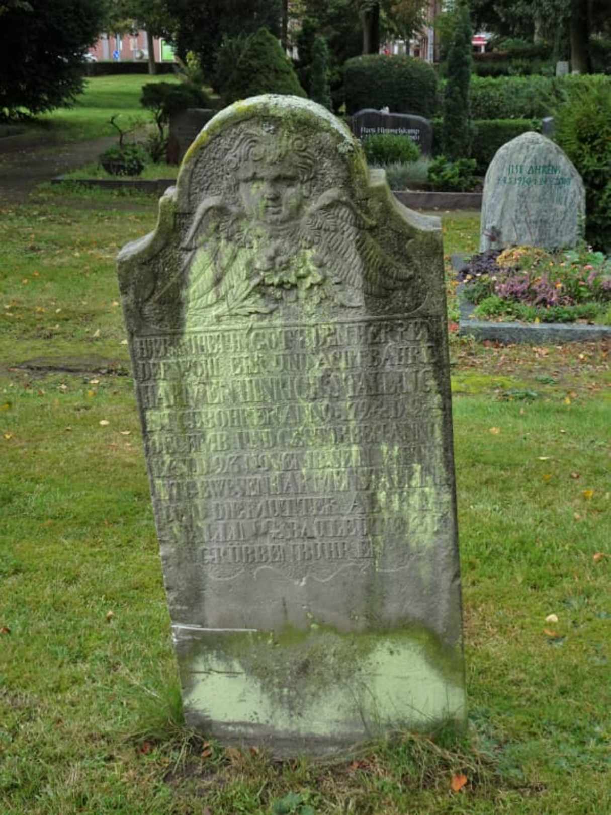 Historischer Grabstein auf dem Kirchenfriedhof
