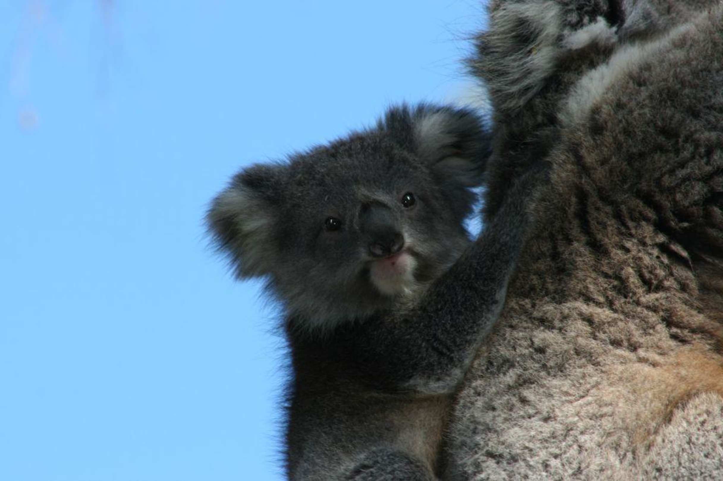 Koalababy auf dem Rücken der Mutter