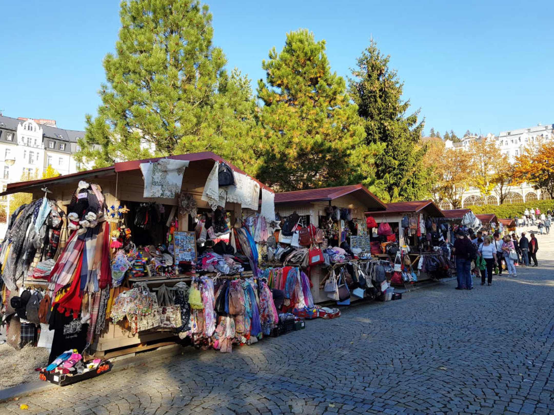 Ein paar Verkaufsbuden im Park