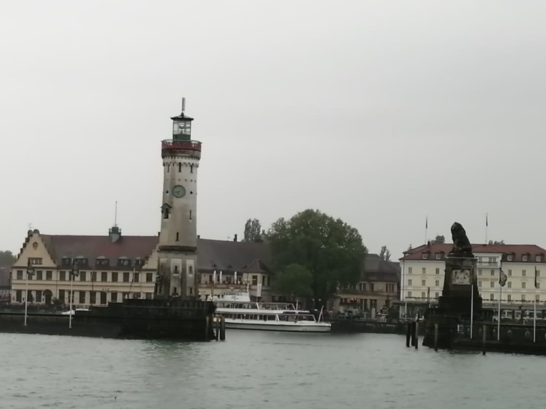 Hafeneinfahrt: Bayerischer Löwe und Leuchtturm