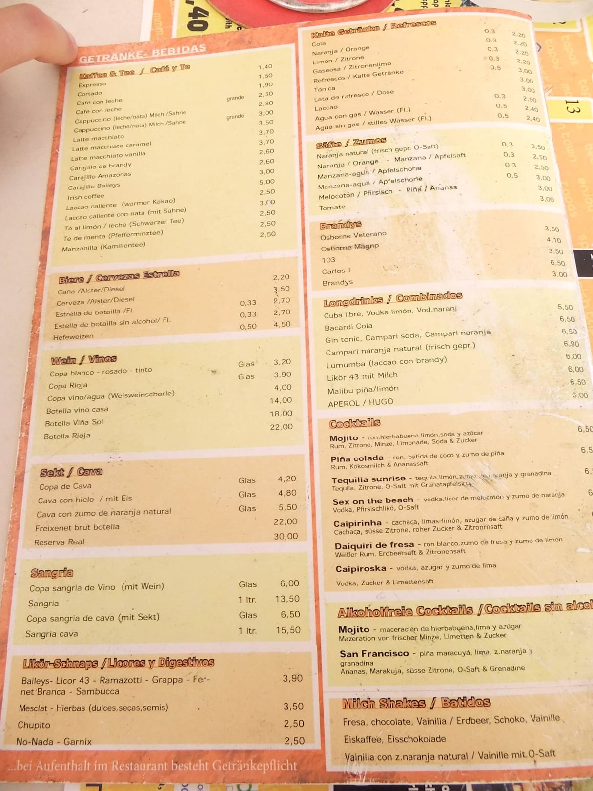 Getränkekarte