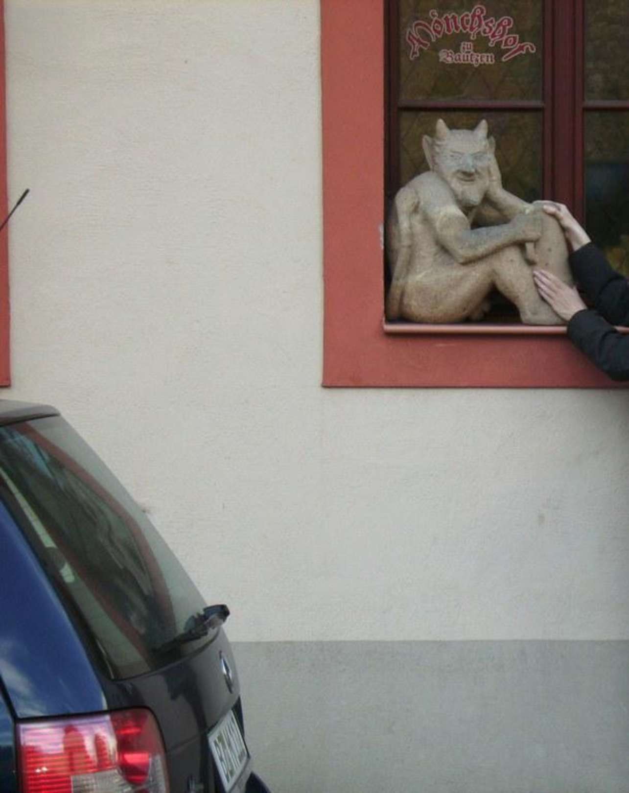 Detail Fassade Mönchshof:Teufel wartet auf Mönche
