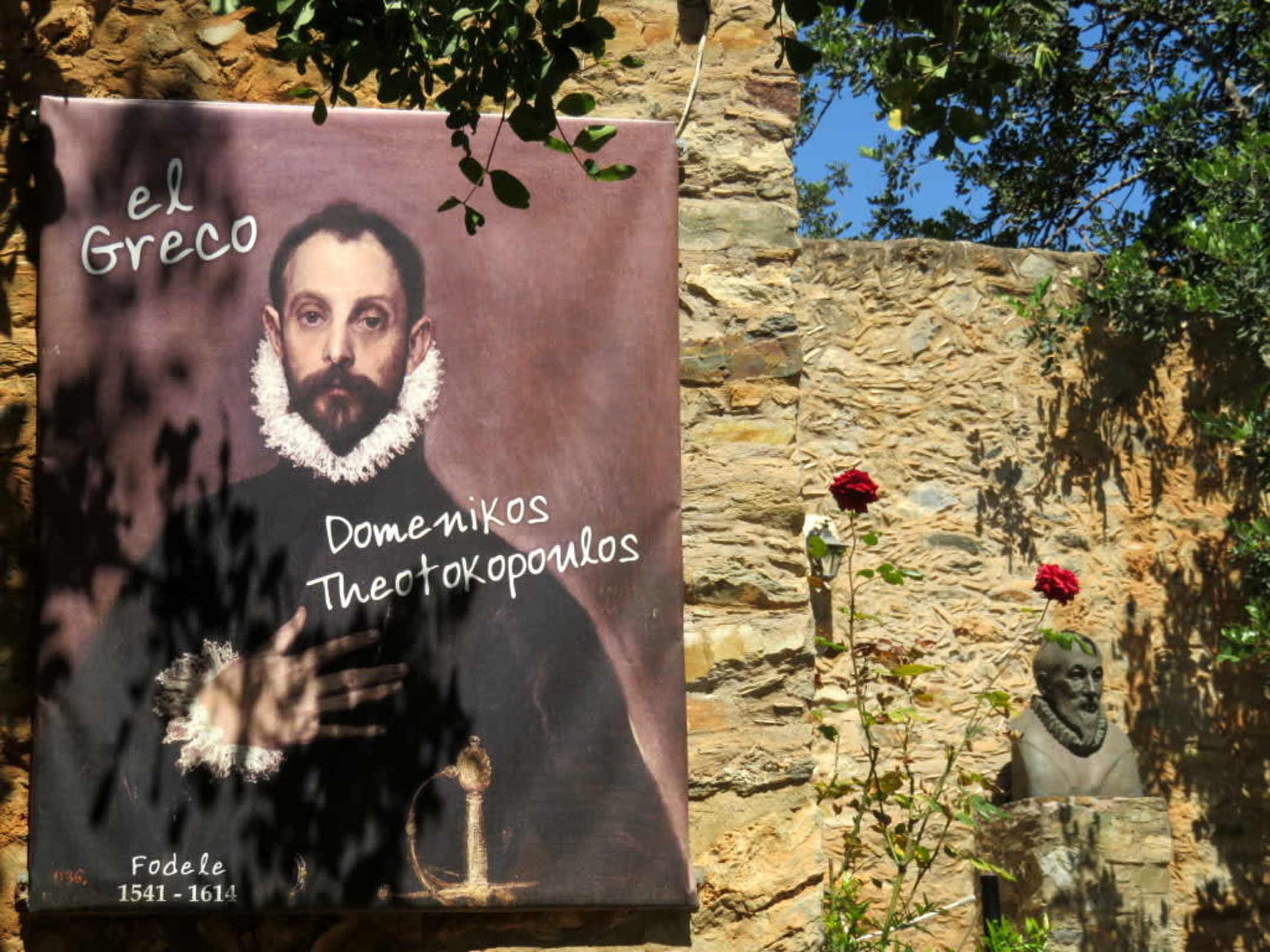 Hinweistafel und Büste von El Greco