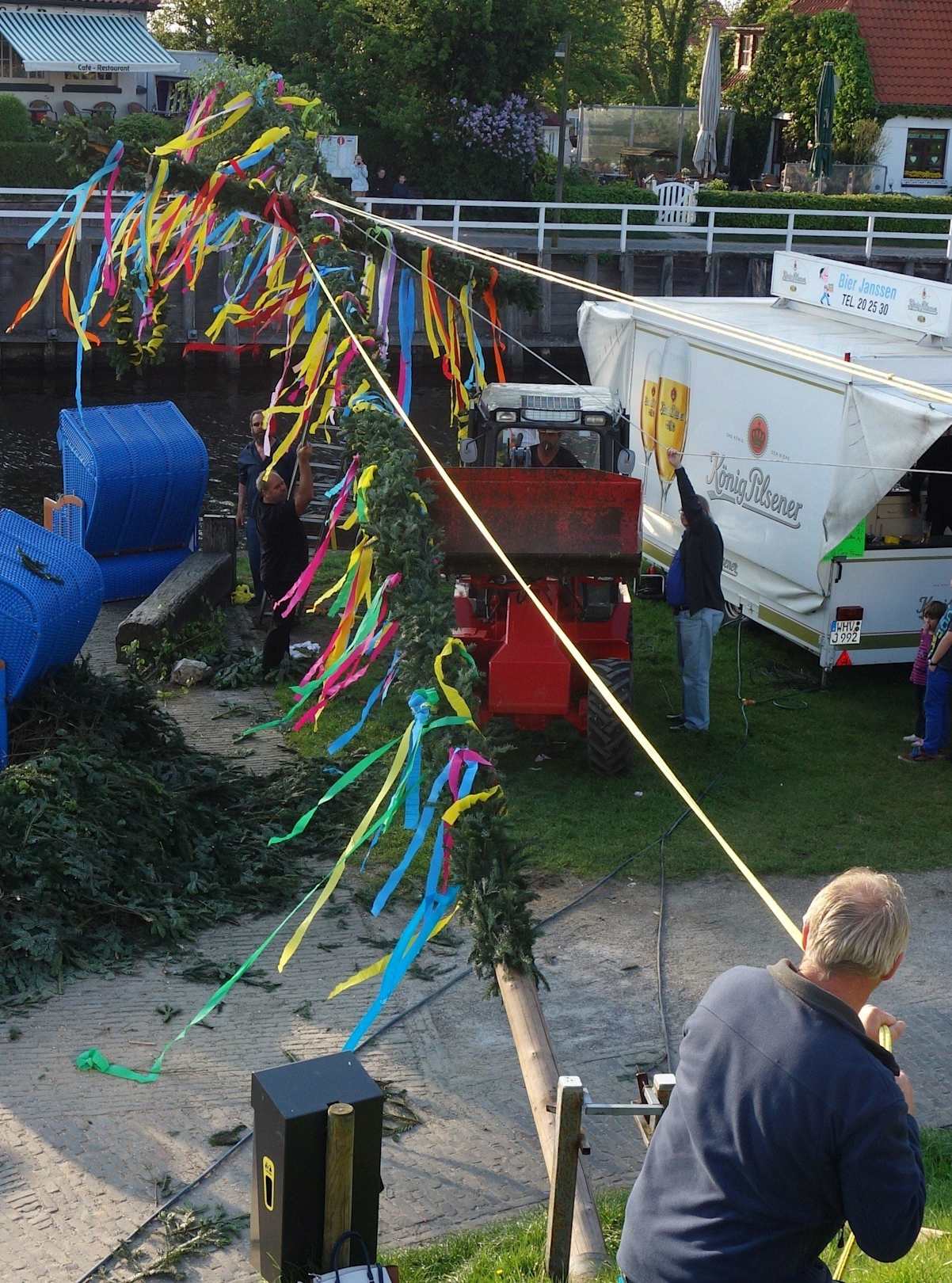 Aufstellen des Maibaums im Hafen