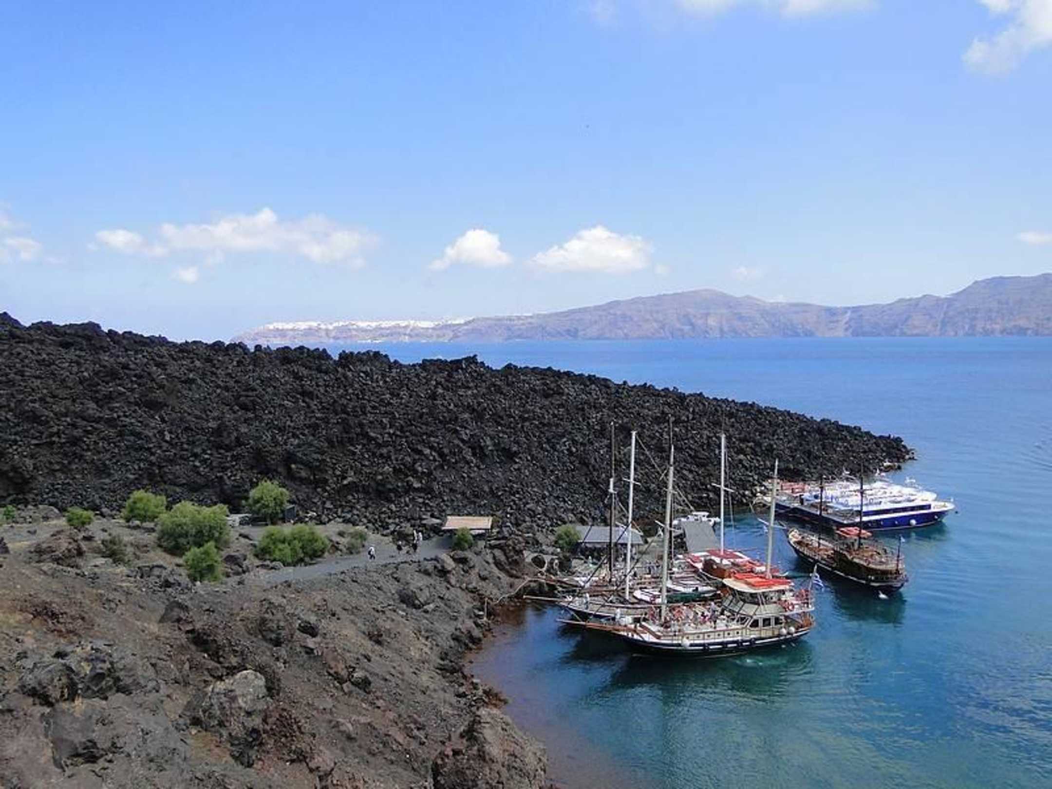 Wyspa Nea Kameni, Widok na port.