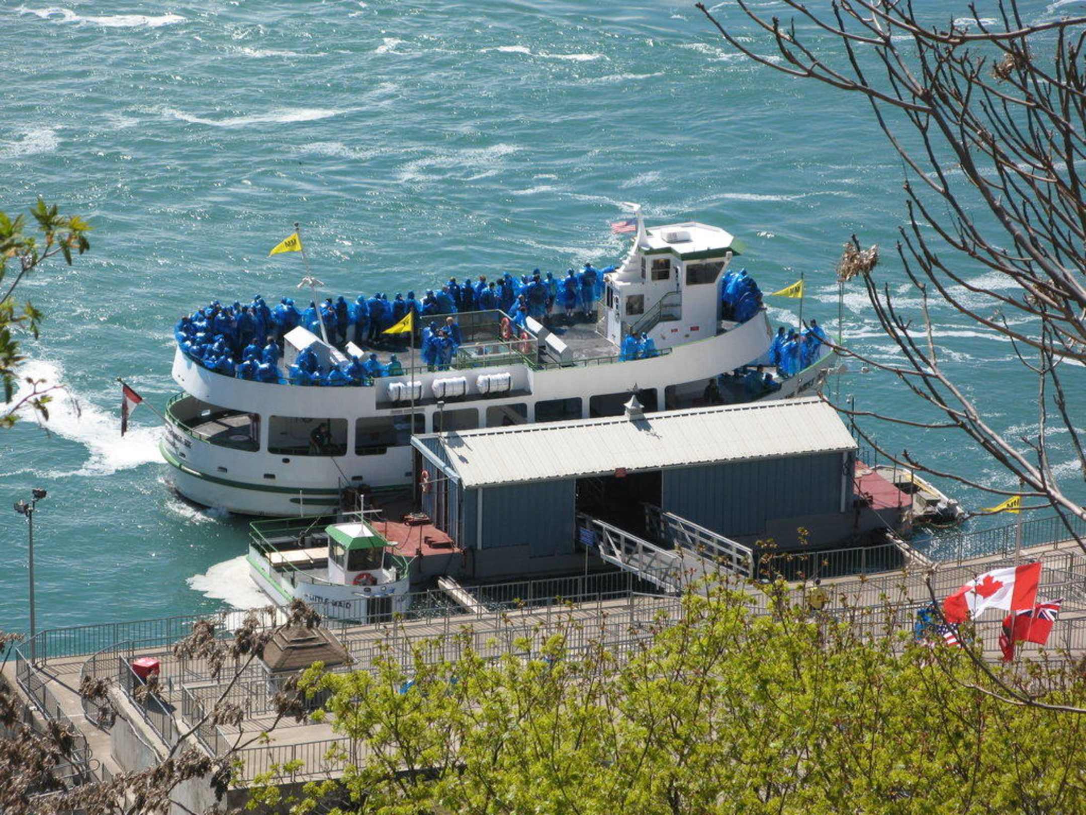 Boote, die zu den Wasserfällen starten