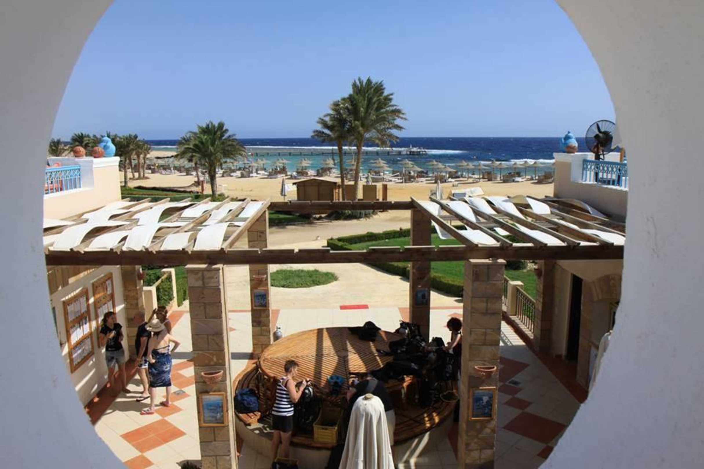 Blick aus der Skylounge auf die Tauchbasis