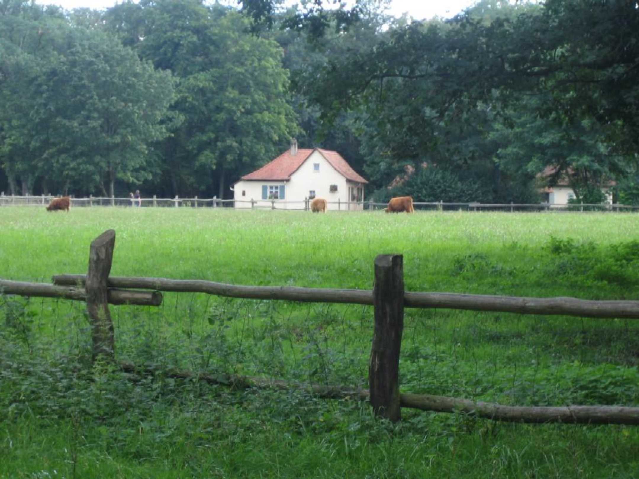 Das kleine Dorf mit Weide davor.