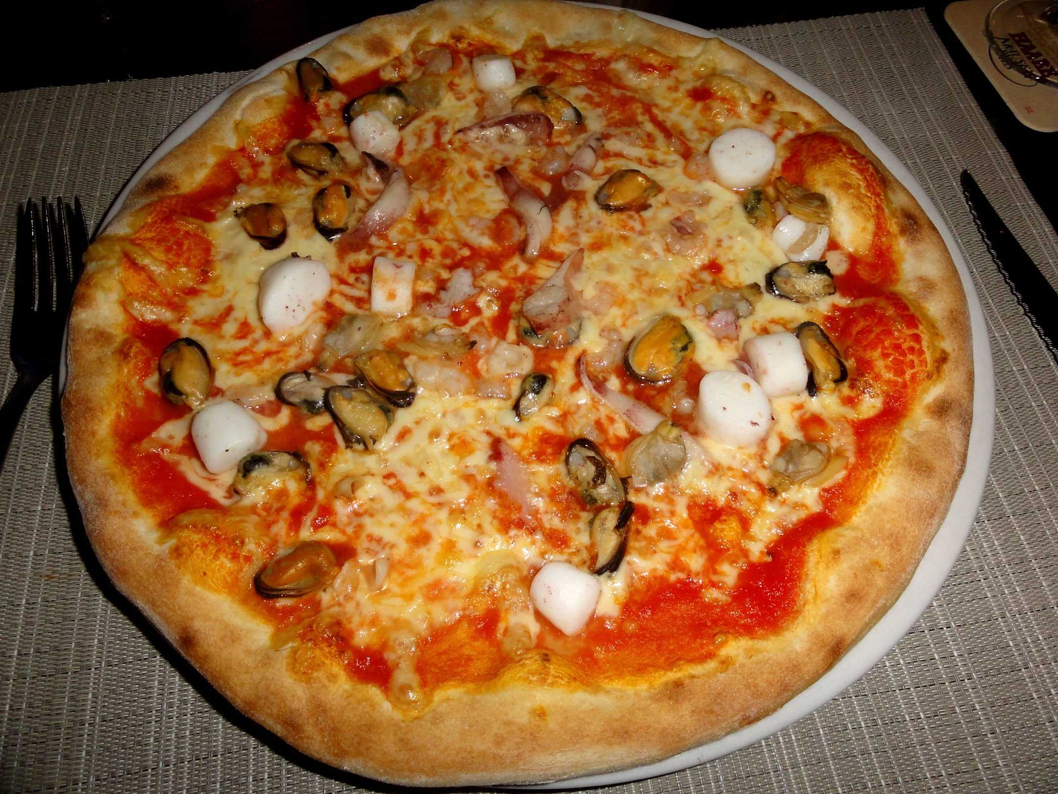 Pizza mit Meeresfrüchten im Casetta